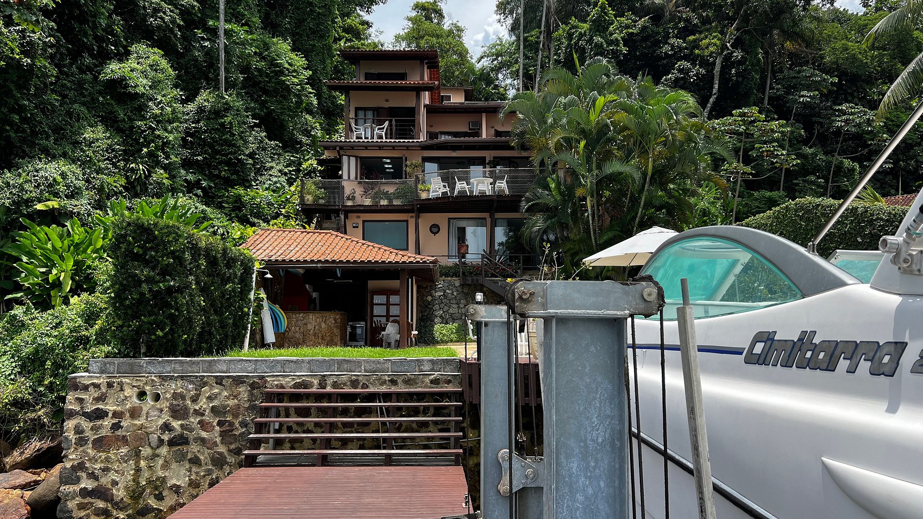 La propiedad está ubicada en Vila Velha, en una de las zonas más exclusivas de Angra dos Reis. La casa está "a pie de playa" junto a la Playa do Leste y muy cerca de Playa Grande, lo que facilita el acceso a baños de mar y paseos náuticos. La zona es segura y ofrece el equilibrio perfecto entre la tranquilidad de la naturaleza y la proximidad a los puntos turísticos locales.