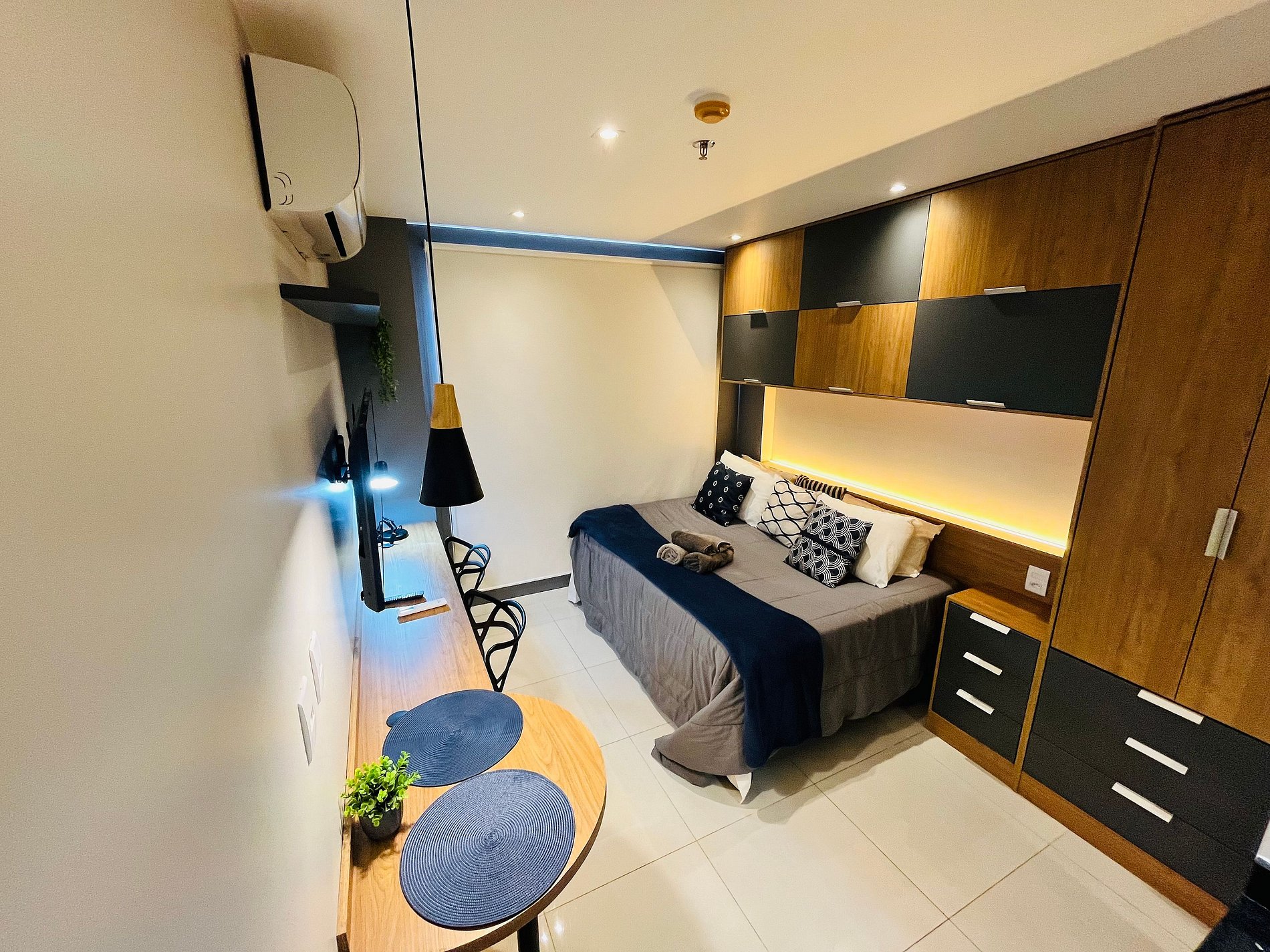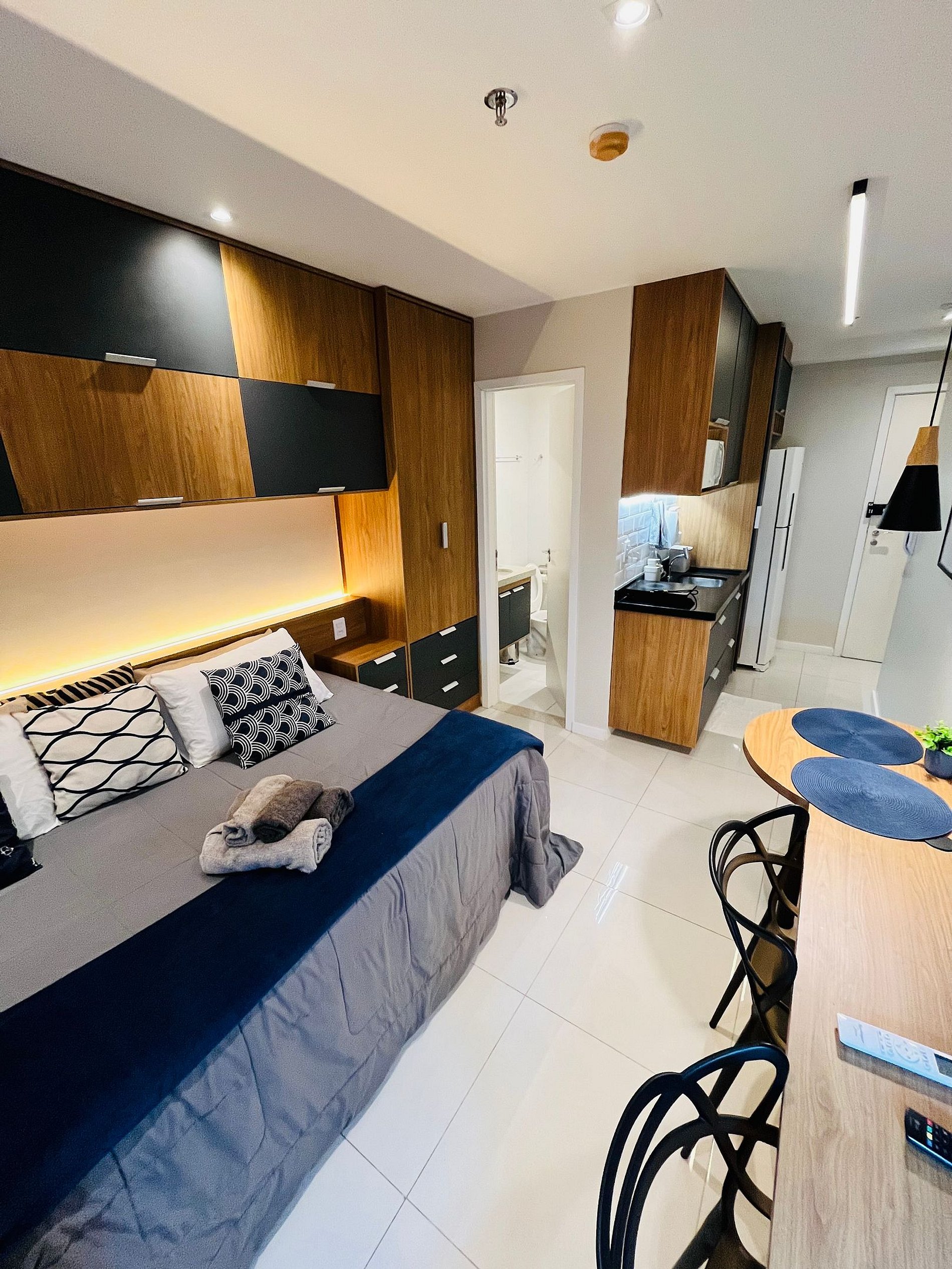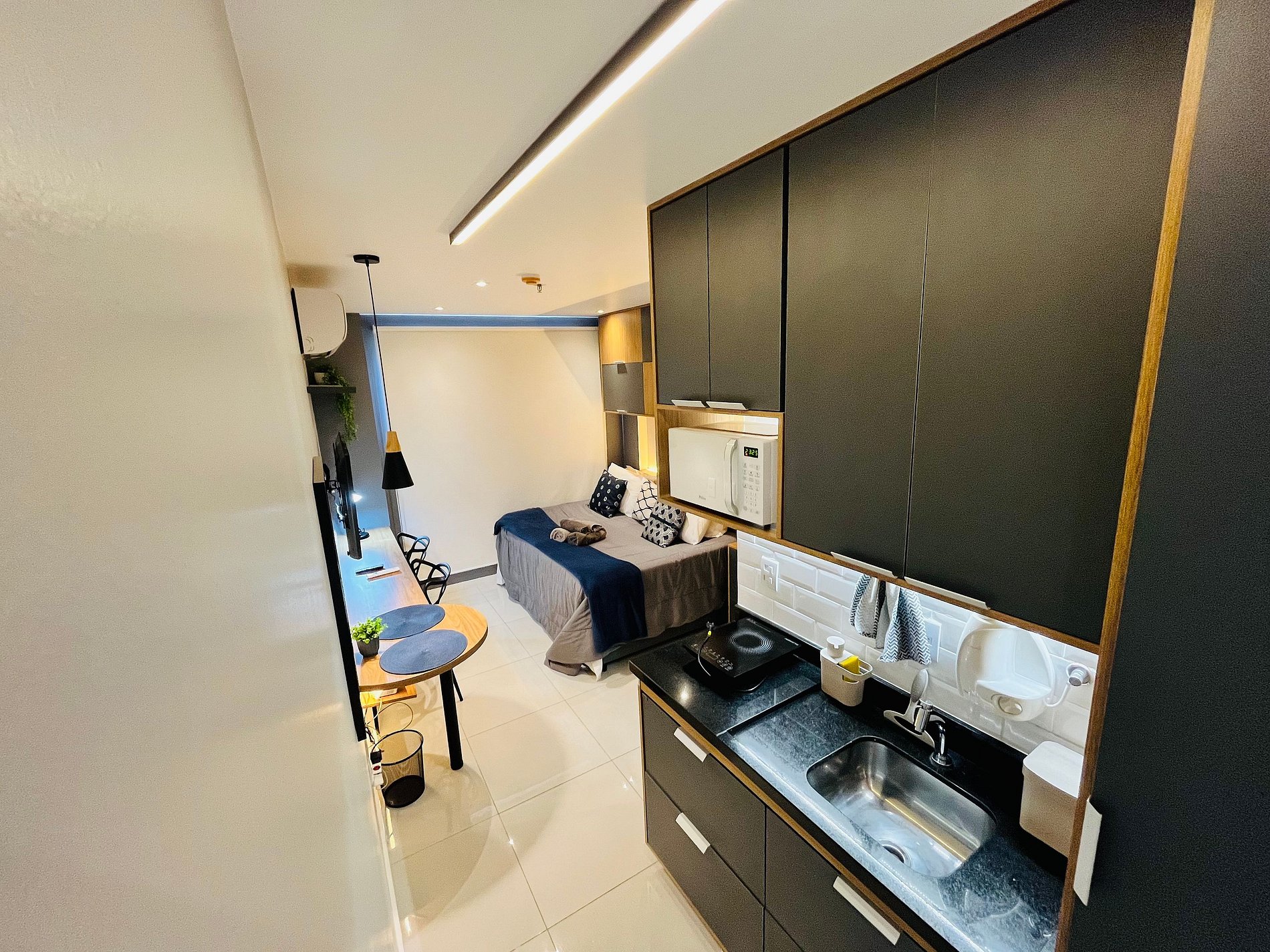 O imóvel é 100% novo, com mobília moderna, itens em perfeito estado e acabamento de alto padrão, proporcionando uma experiência semelhante à hotelaria premium.