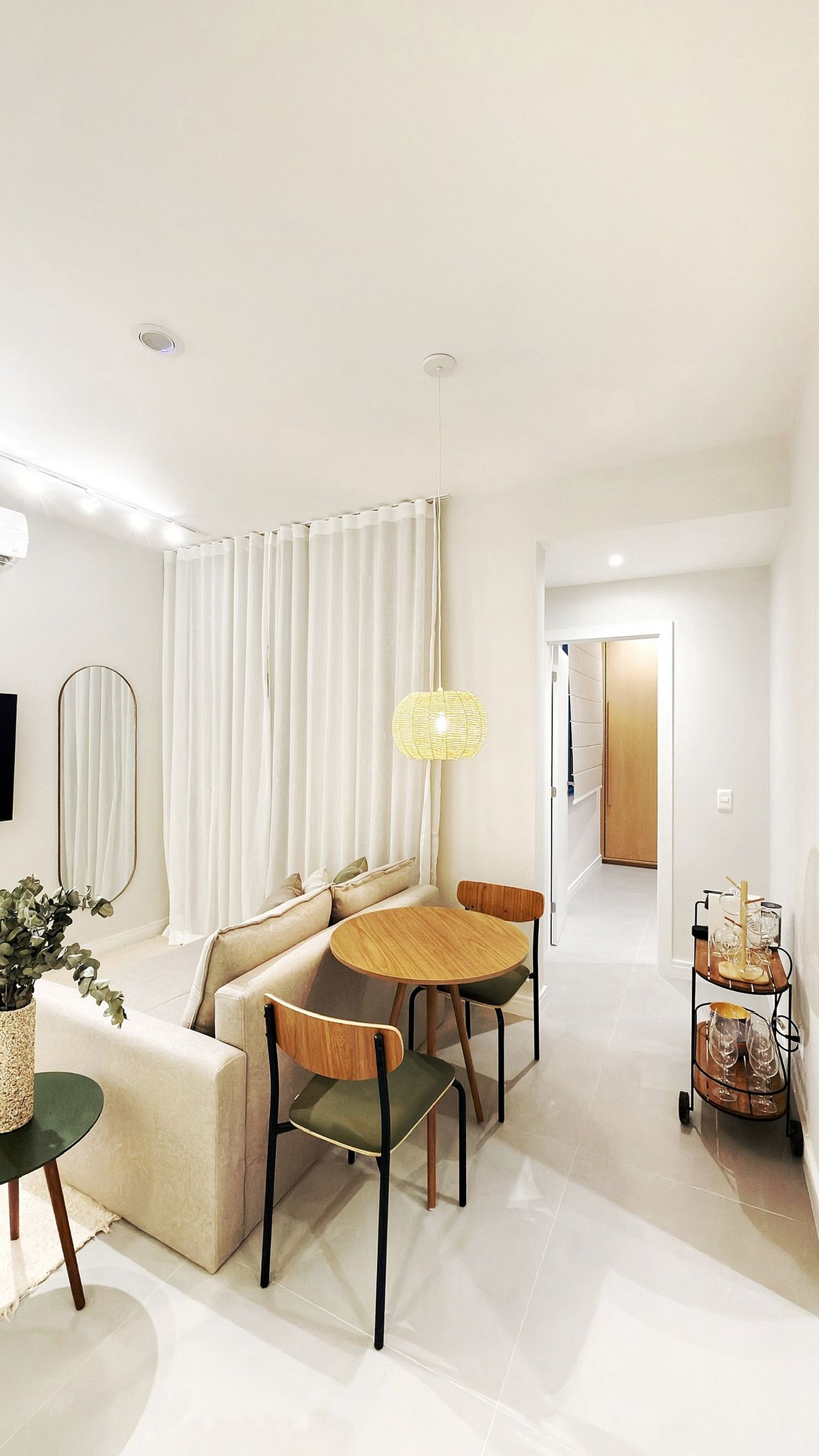 A sala e a cozinha são integradas, criando um ambiente moderno e acolhedor. O apartamento conta com ar-condicionado em todos os ambientes, Smart TV, internet Wi-Fi de alta velocidade e posição de fundos, garantindo silêncio e tranquilidade, mesmo estando a poucos passos da praia.