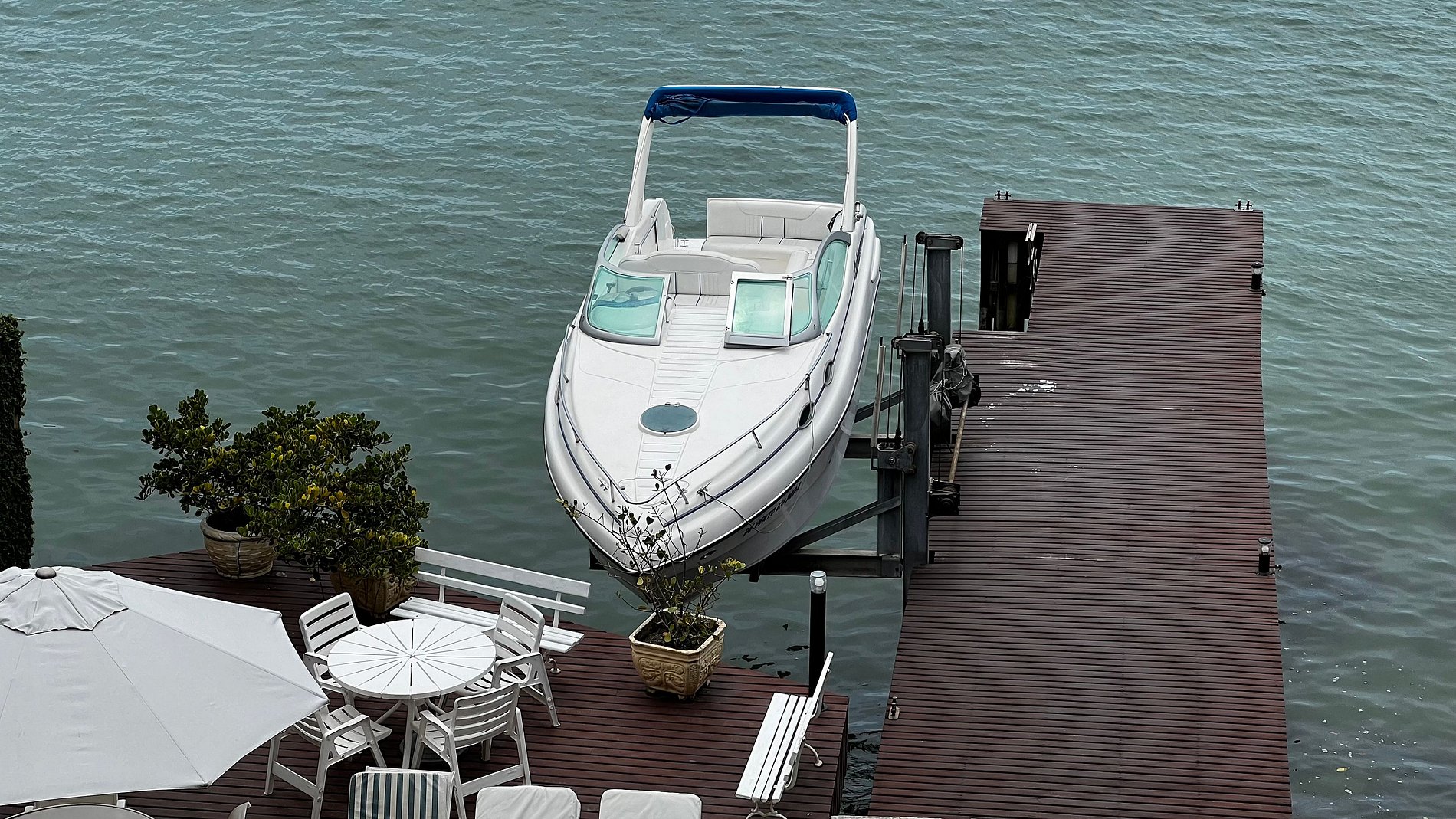 O imóvel acomoda grandes grupos com 5 quartos (3 suítes) e oferece deck exclusivo com acesso direto à água.