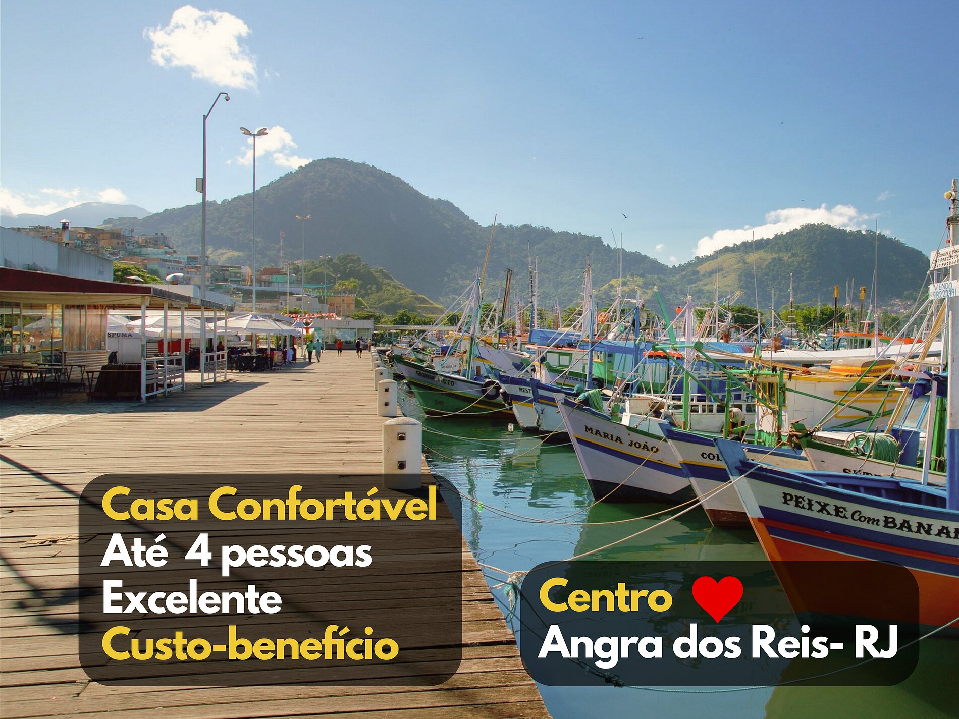 Descubra Angra a pé! Nossa casa no Centro é o ponto de partida ideal. Com 2 quartos confortáveis, sala, cozinha prática e uma charmosa varanda, ela oferece o refúgio perfeito após um dia de praia. O melhor? A localização! Você está ao lado do Cais Santa Luzia para embarcar rumo à Ilha Grande, e cercado pelo melhor comércio (Rua do Comércio), supermercados (Zona Sul) e restaurantes da cidade. Praticidade total para sua viagem em família.
