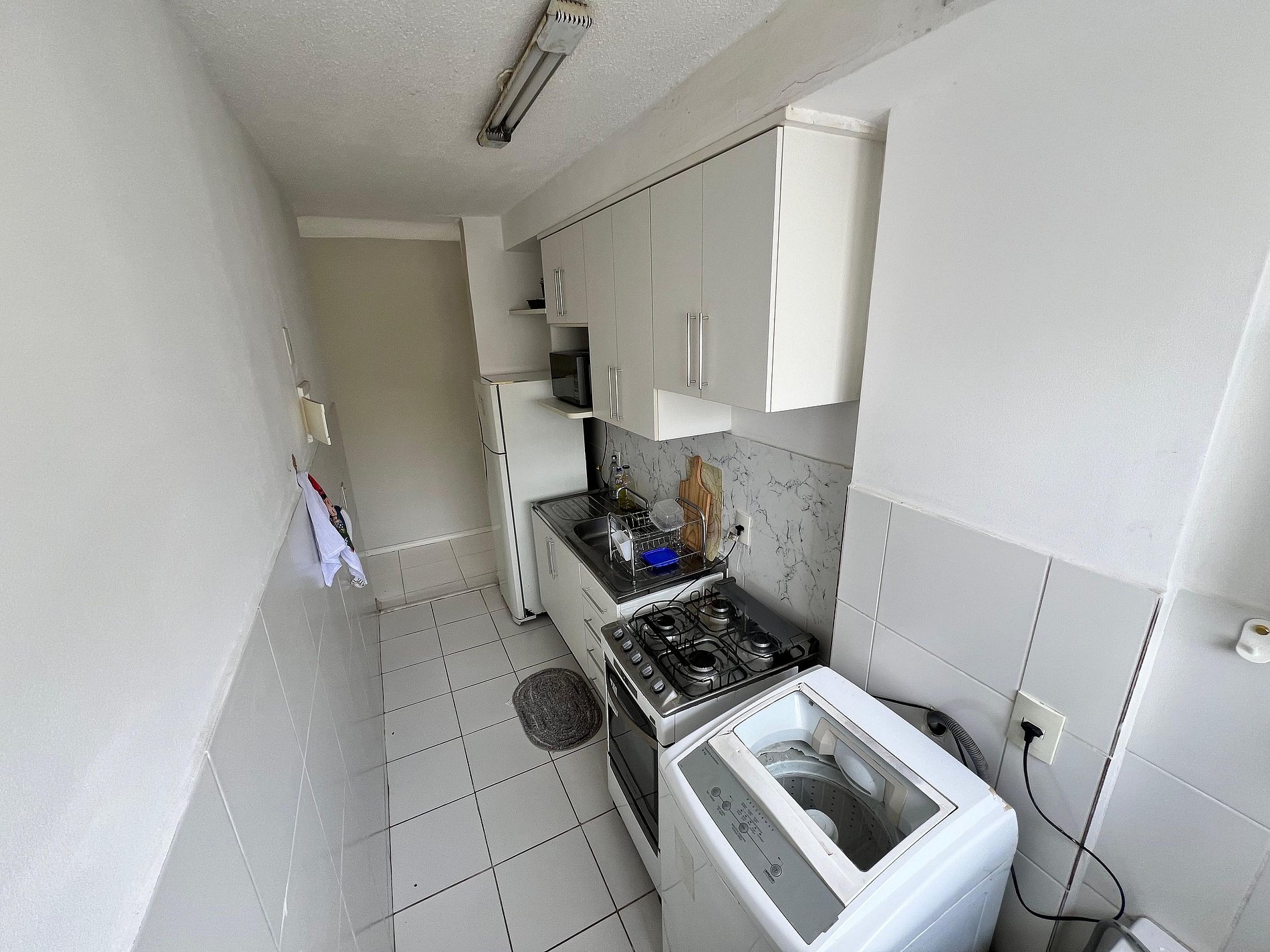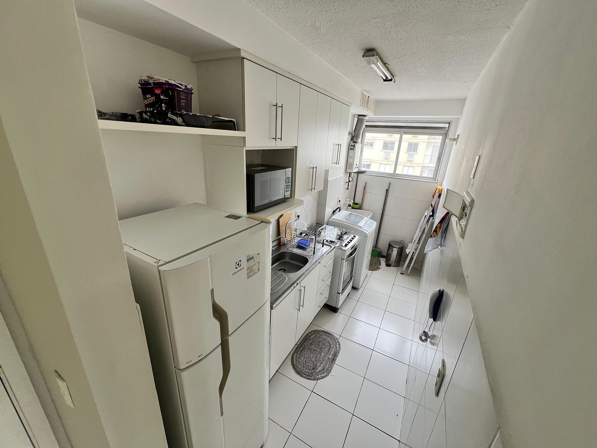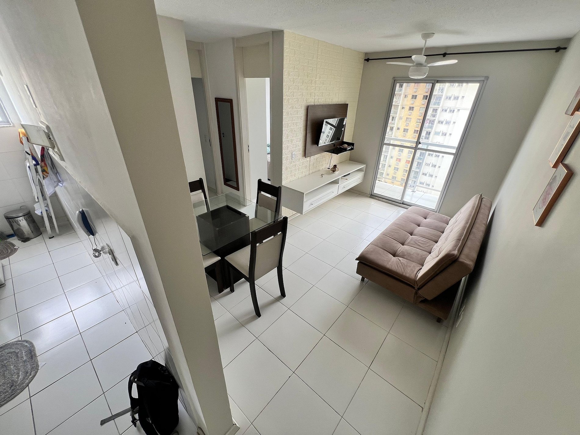 Apartamento completo na Barra Olímpica, Rio de Janeiro, com 2 quartos,1 sofá cama na sala, 1 banheiro, cozinha equipada e área de serviço.