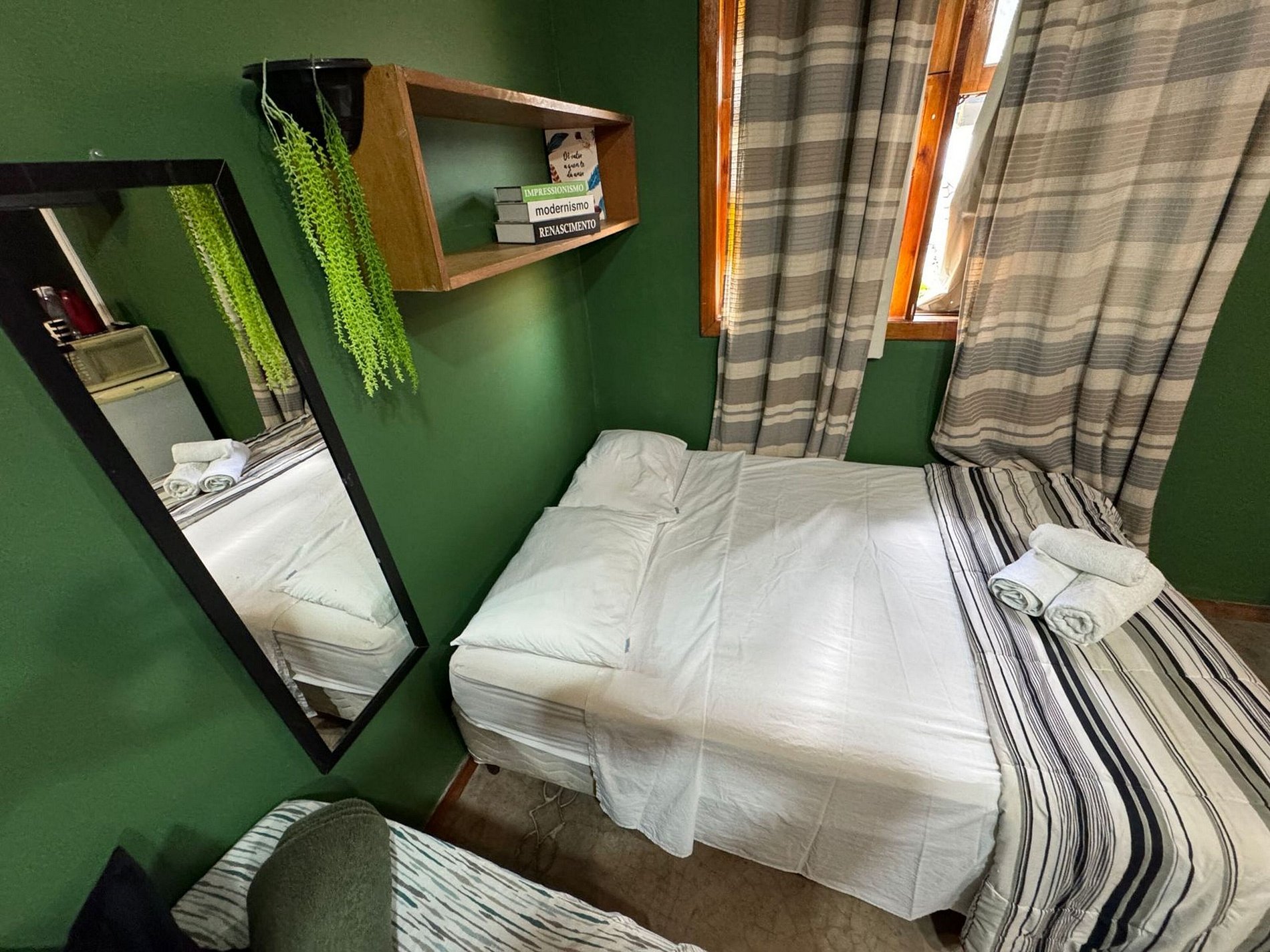 Studio aconchegante, ideal para até 3 pessoas. Conta com TV, Wi-Fi de alta velocidade e cozinha de apoio equipada com fogão elétrico, airfryer, micro-ondas e frigobar. Moderno e bem estruturado, possui chuveiro com água quente, espelho grande e secador de cabelo.