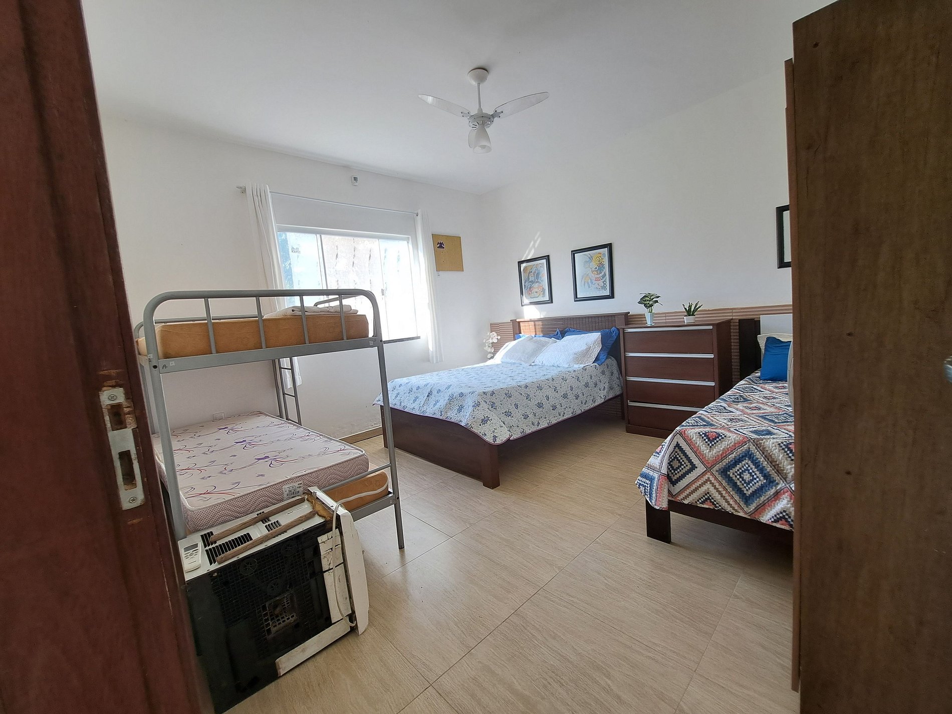 Com um amplo quintal gramado, piscina e churrasqueira, você pode desfrutar de momentos de relaxamento com a família e amigos. A casa possui dois quartos grandes, sendo o primeiro com cama de casal e o segundo com uma cama de casal, uma cama beliche para duas pessoas e uma cama de solteiro, acomodando confortavelmente até sete pessoas.
