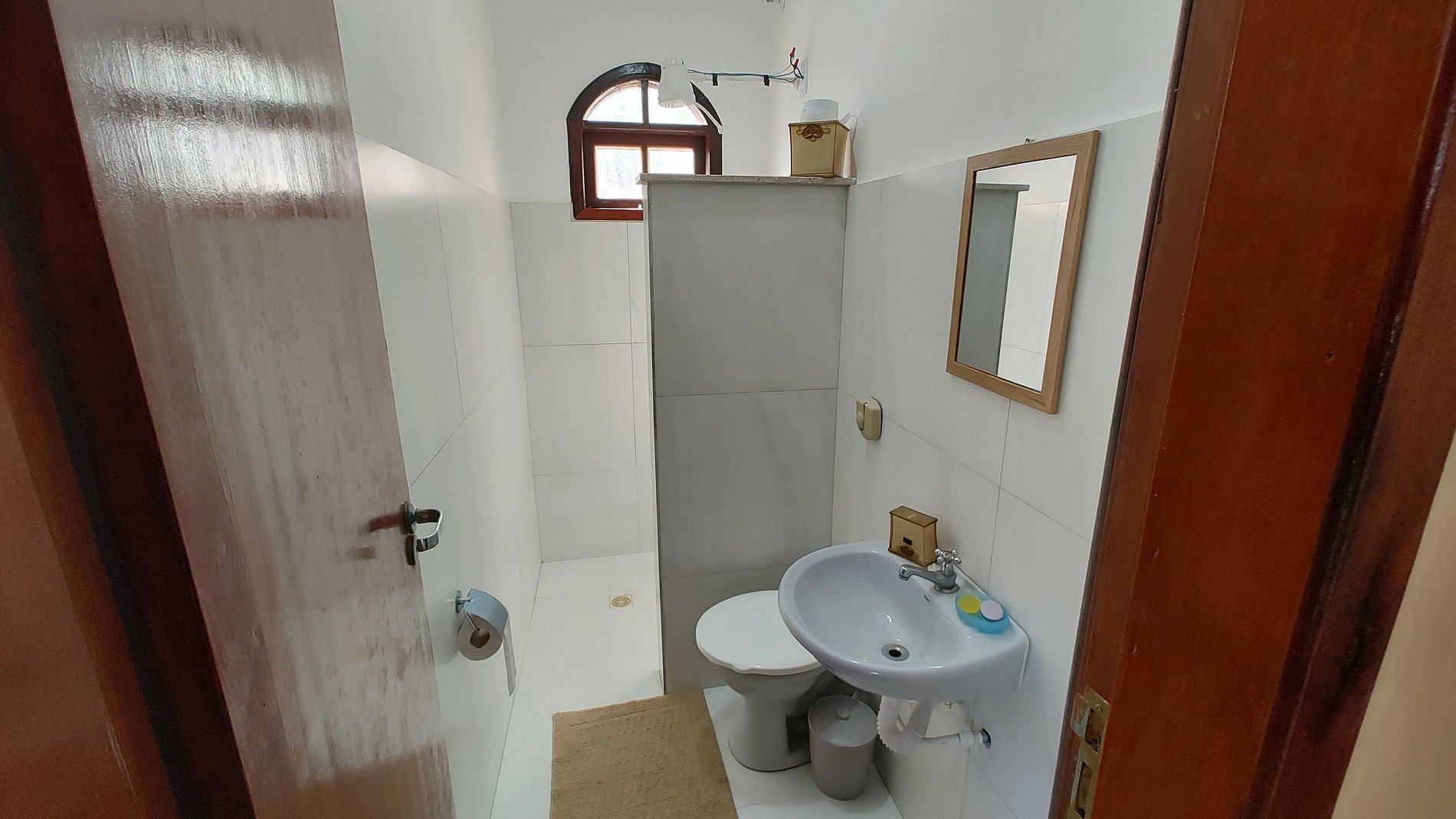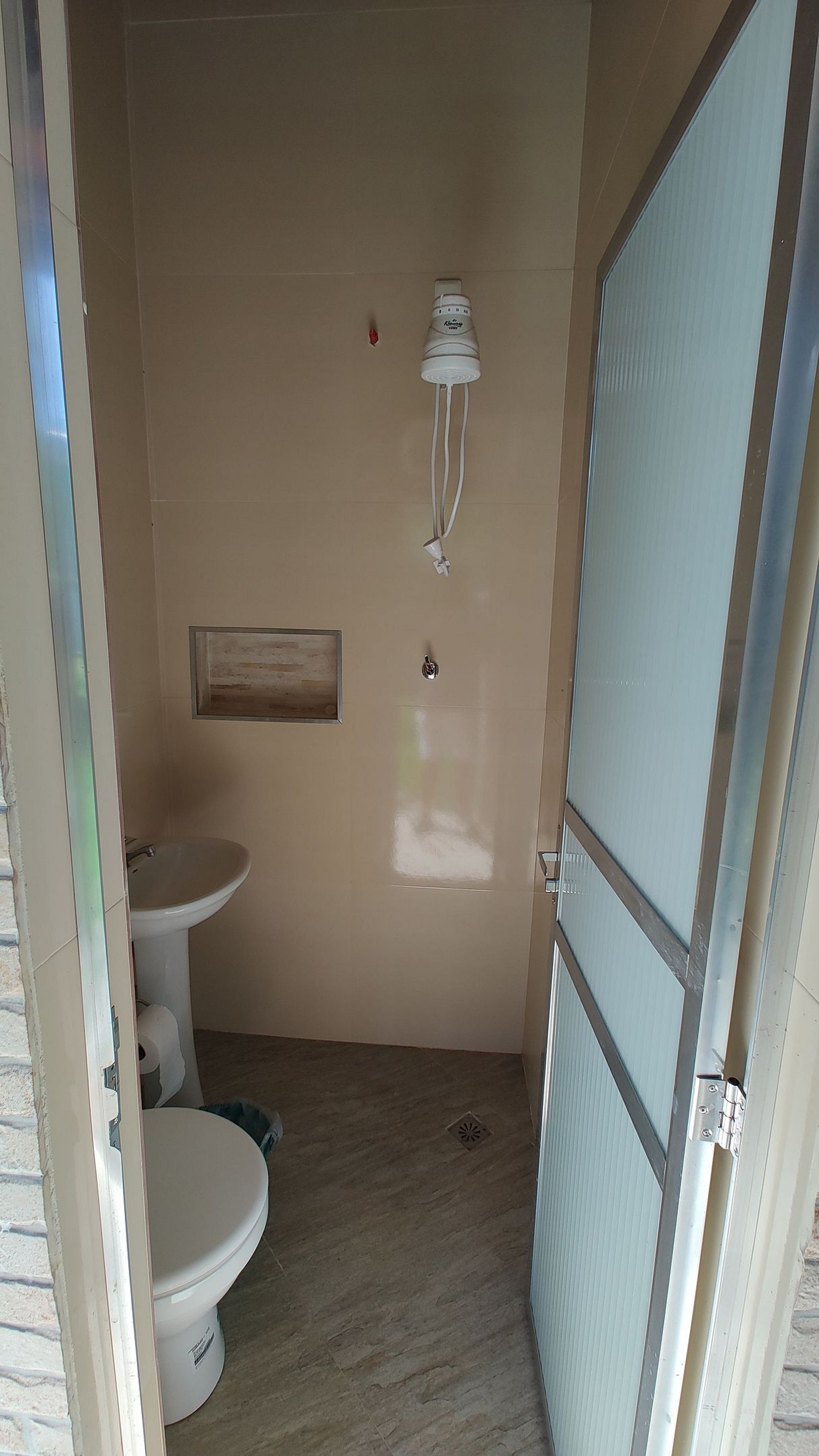 Desfrute de uma ducha refrescante sob a luz do dia e maravilhe-se com a natureza ao seu redor. Aqui, você encontrará paz e descanso, longe da vida cotidiana. Pequenas vendinhas, mercado, restaurantes de alto e baixo custo, farmácias e todas as portas do comércio local estão a apenas 10 minutos de carro. Para emergências, há também pequenas vendas no bairro.