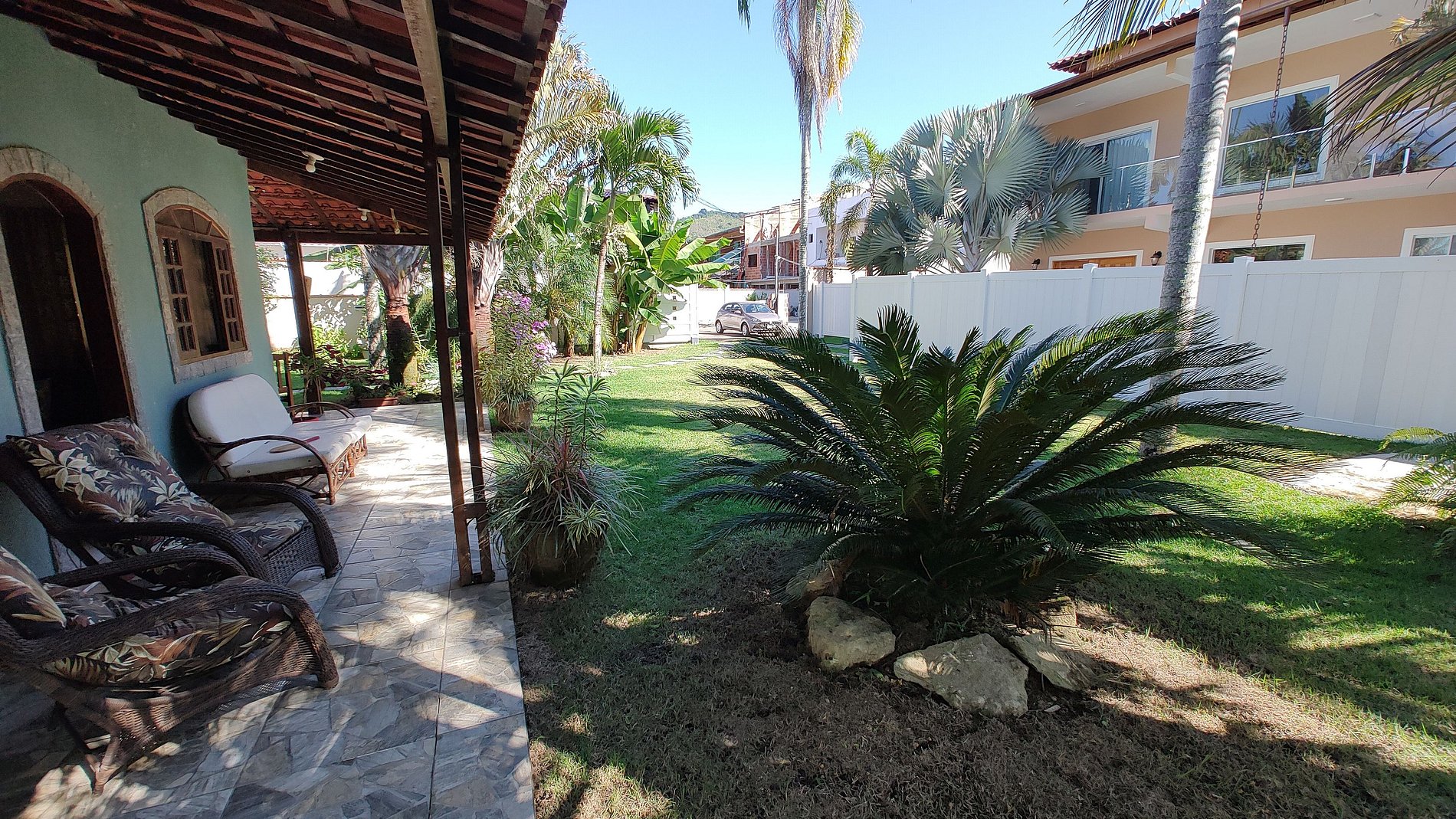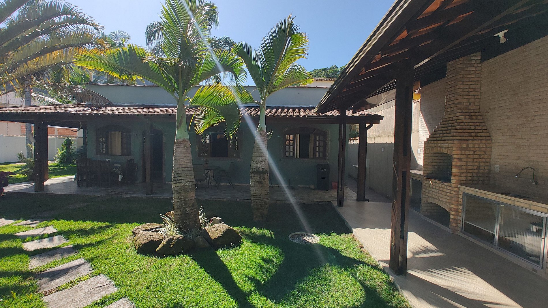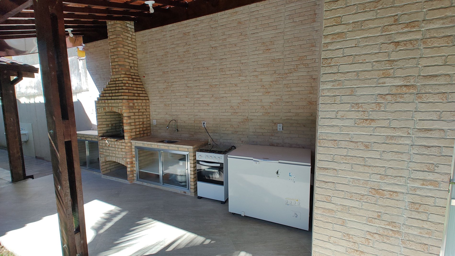 Com muito espaço para as crianças correrem soltas e brincarem, você terá uma tranquilidade de saber que elas estão seguras e se divertindo. A área de lazer da casa é um verdadeiro paraíso, com uma churrasqueira para deliciosos churrascos em família, um fogão e uma geladeira para preparar suas refeições com facilidade. Além disso, há banheiros externos para maior comodidade