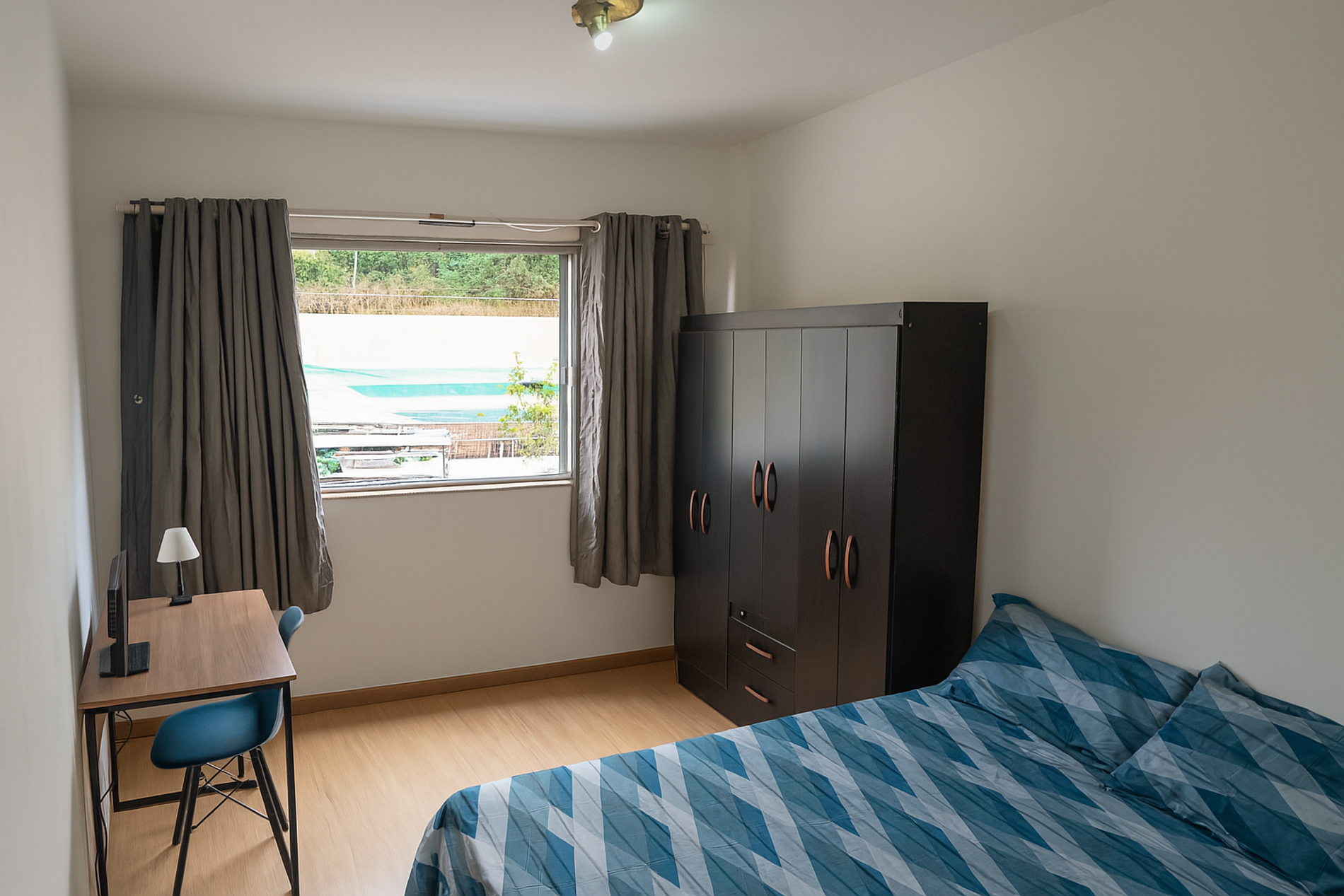 Quarto confortável com ambiente bem aproveitado
