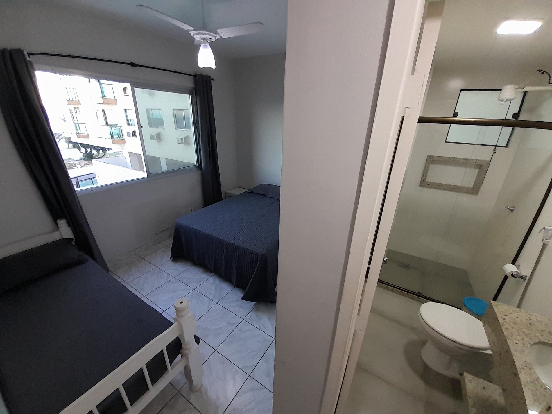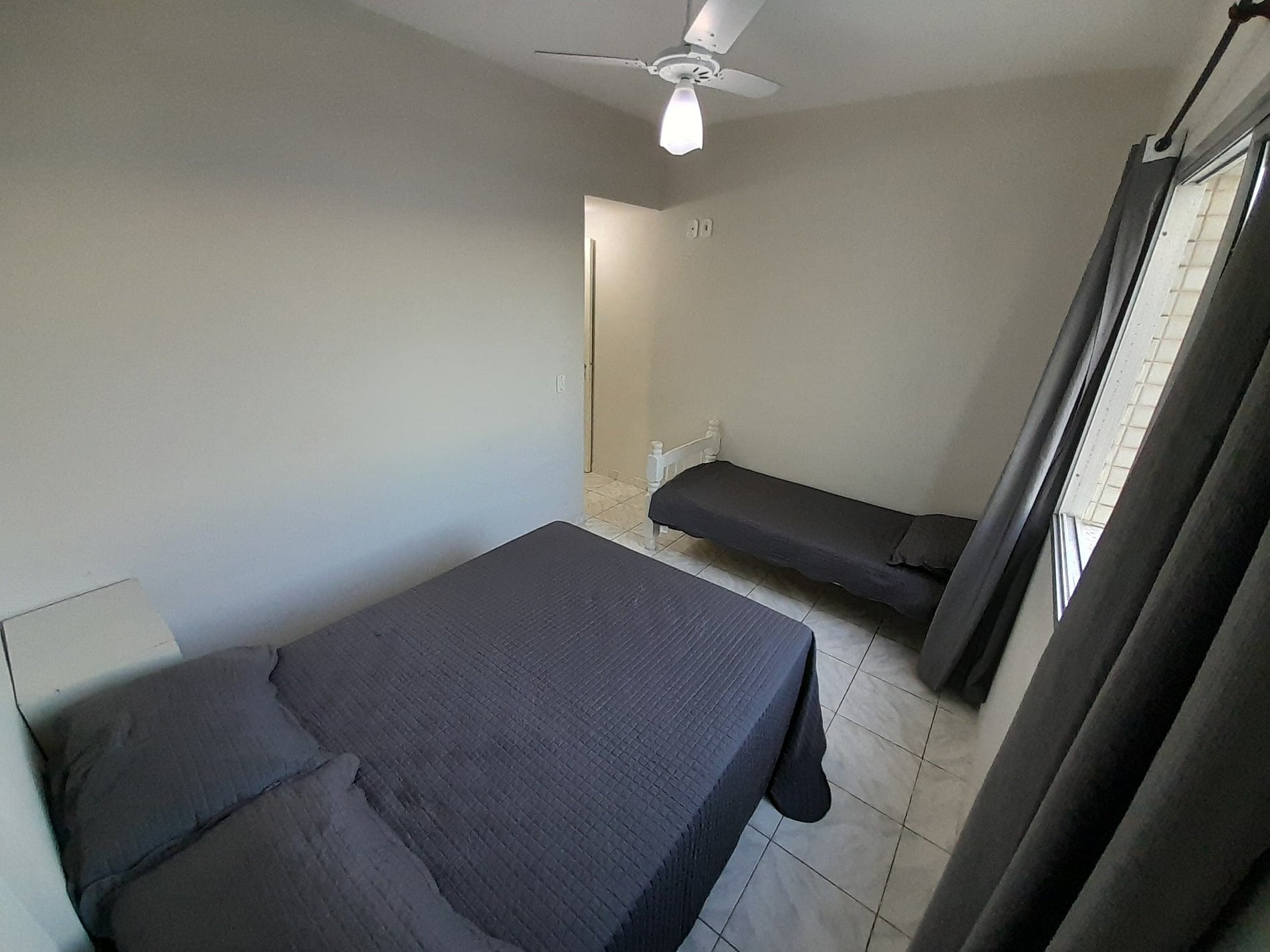 Existem um terceiro quarto sem janela com uma cama de solteiro mas não contamos como hospedagem