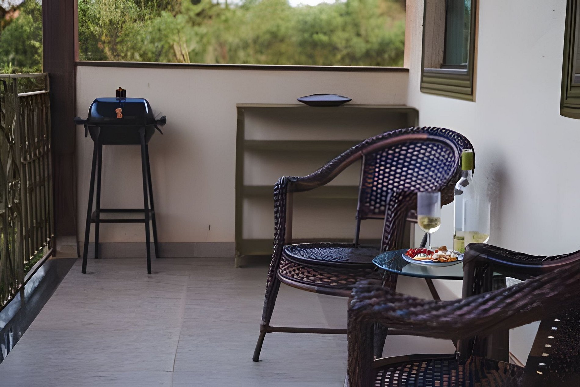 A varanda com churrasqueira e a cozinha equipada completam o conforto. Do interior, você desfruta de uma vista encantadora para as montanhas.