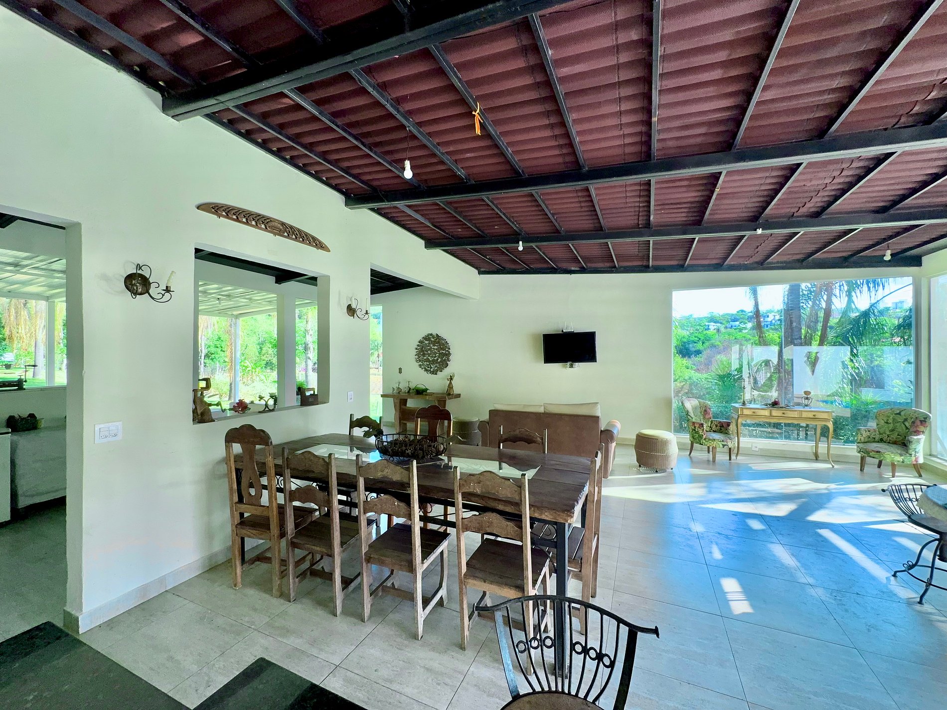 O interior da casa é igualmente impressionante, com ambientes confortáveis, e a conveniência moderna de Internet Fibra Ótica de alta velocidade e TV.