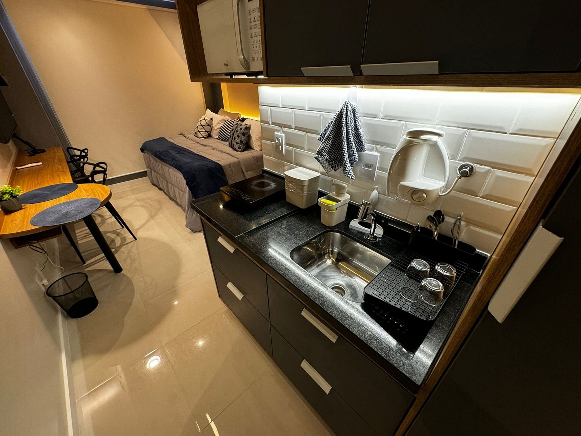Flat 100% novo, com todos os itens em perfeito estado, garantindo um ambiente moderno e elegante.