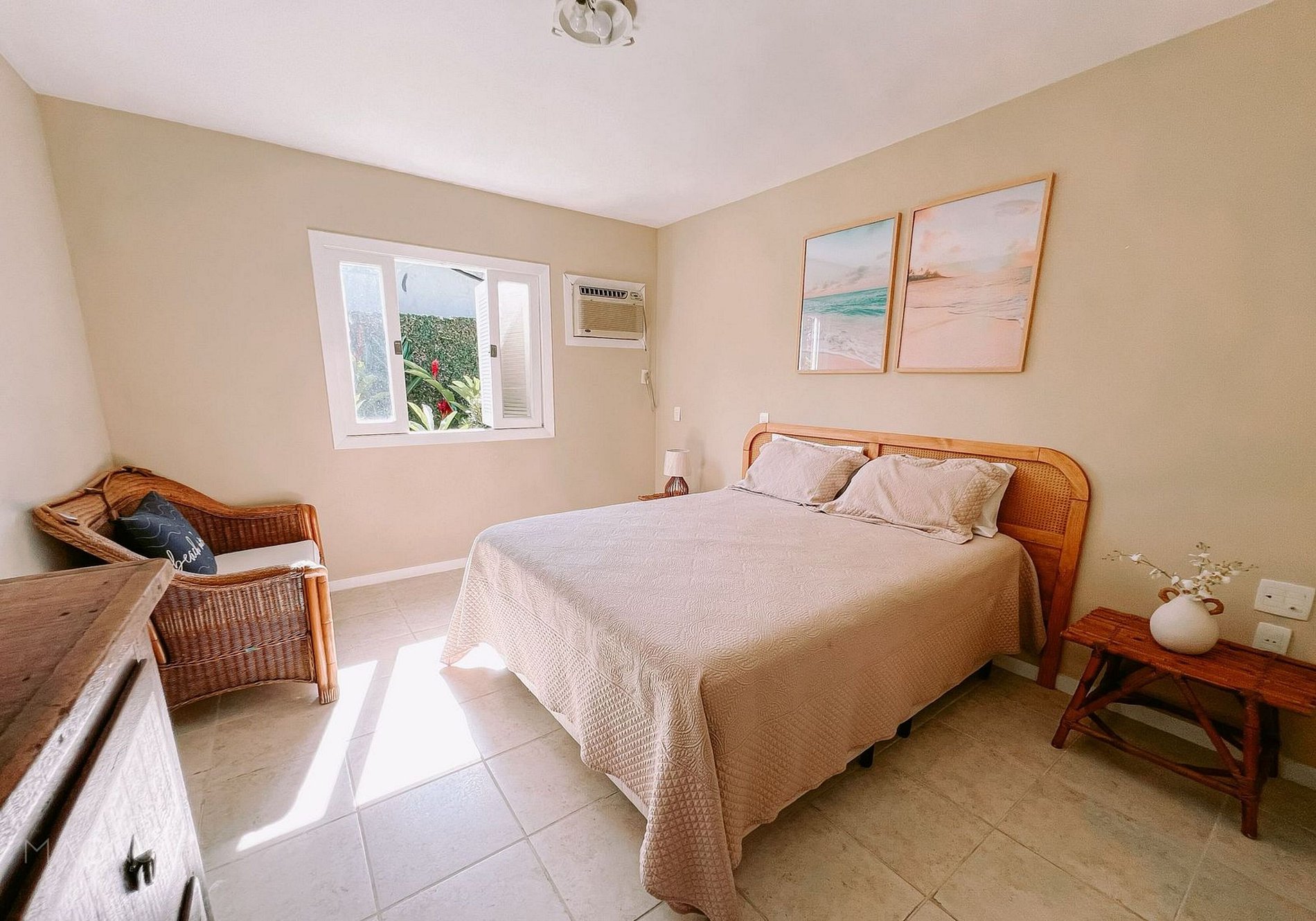 Na casa, dispõe de salas amplas com ar-condicionado, decoração litorânea, cozinha equipada com ilha, quartos aconchegantes com varanda, banheiros modernos, Wi-Fi e Smart TV de 80”.