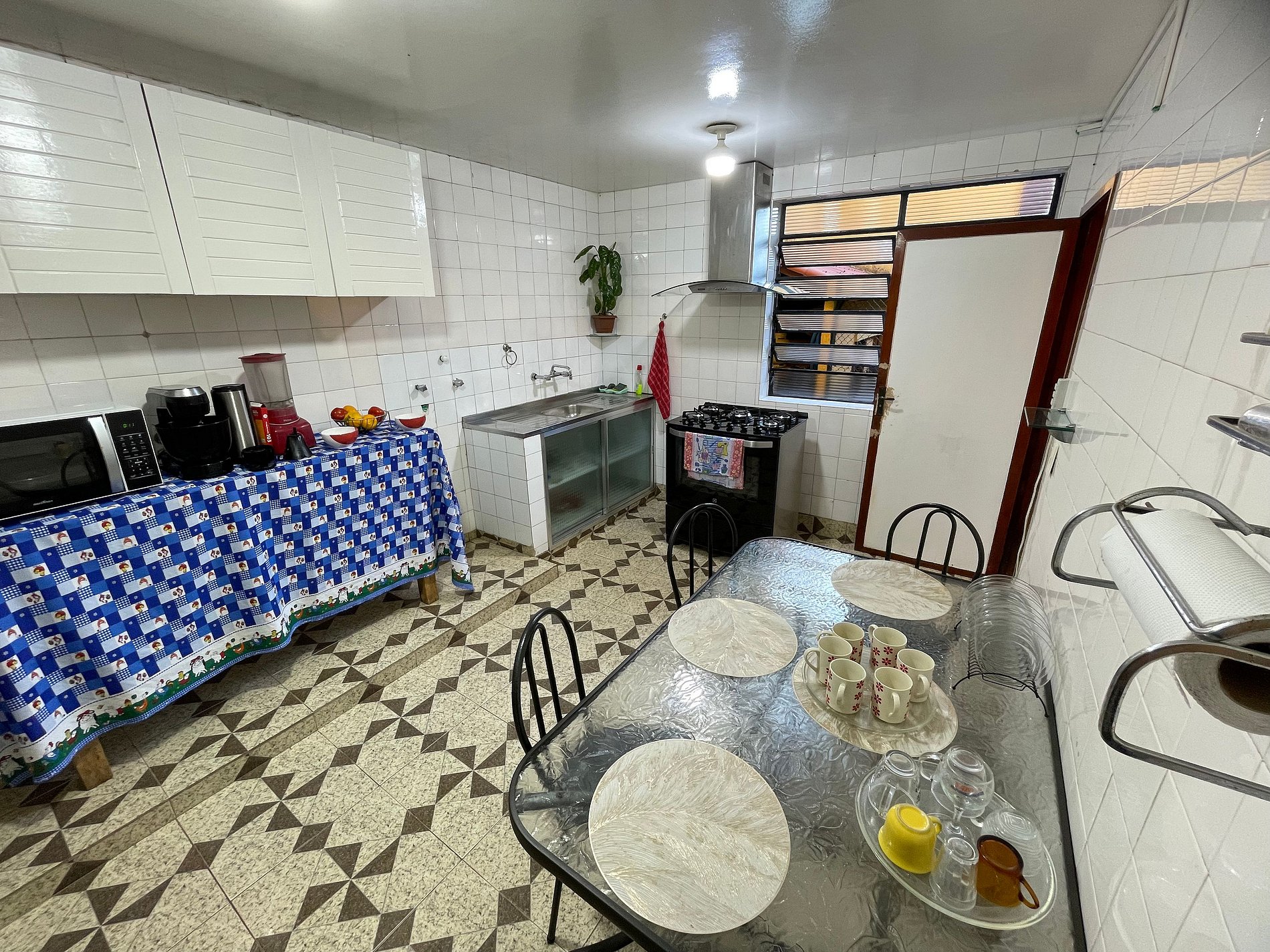 Cozinha equipada com utensílios, eletrodomésticos e todos os itens essenciais.