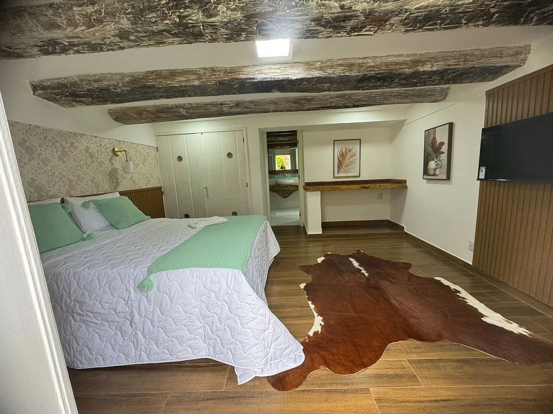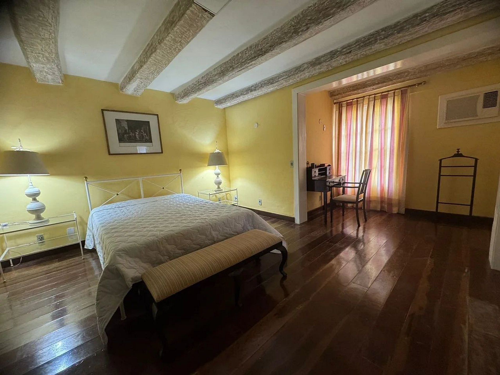 Suítes Magníficas: Quartos amplos com pé-direito alto, mobiliário que evoca o charme de época e enxoval premium.