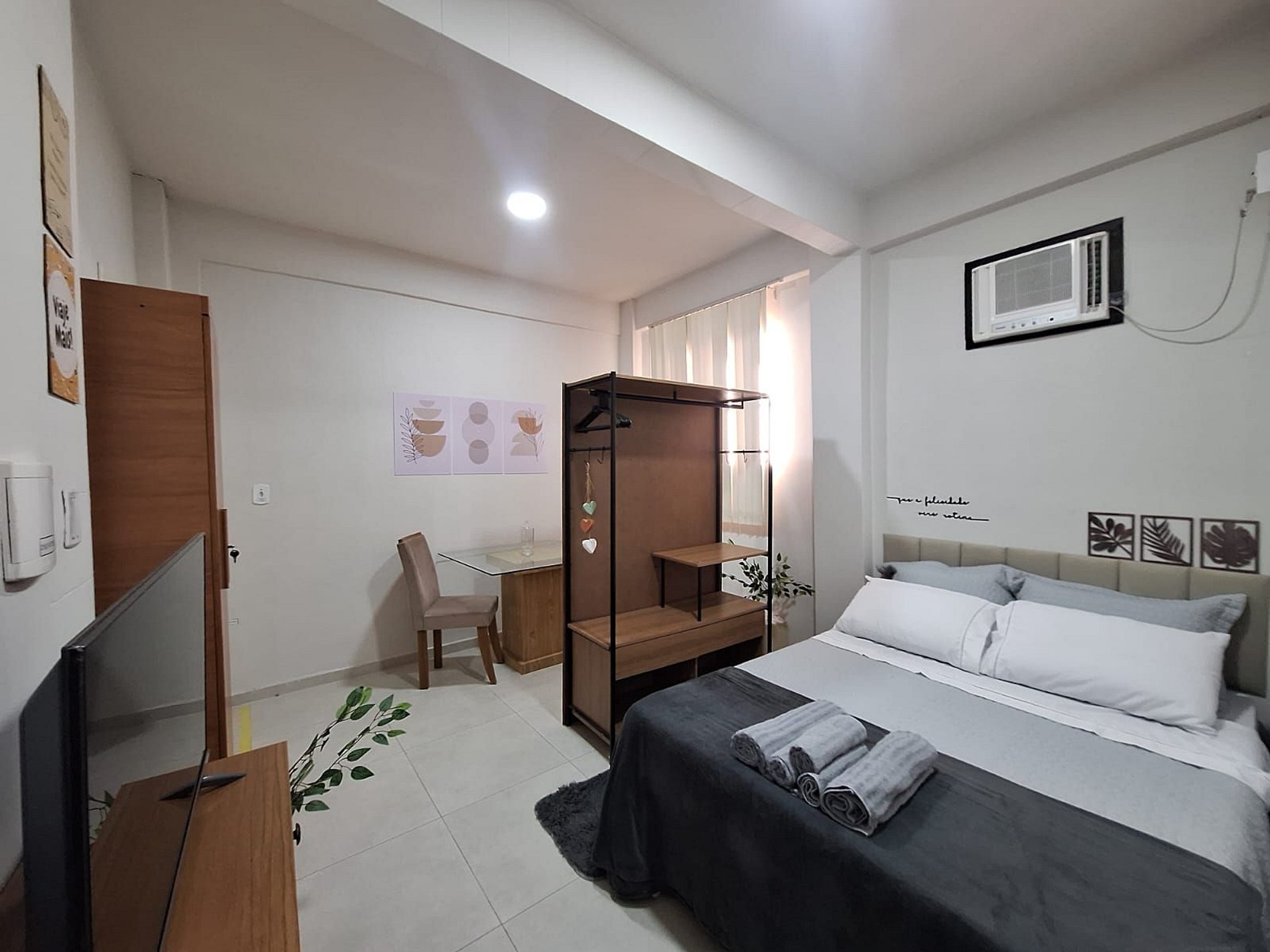 Depois de um dia de compras ou de passeios, você pode relaxar no aconchegante apartamento, que conta com **ar-condicionado** para o seu total conforto, independentemente do clima lá fora. Se preferir ficar em casa, o **Wi-Fi de alta velocidade** permite que você trabalhe, assista a seus filmes favoritos ou compartilhe cada momento da sua viagem com amigos e familiares.