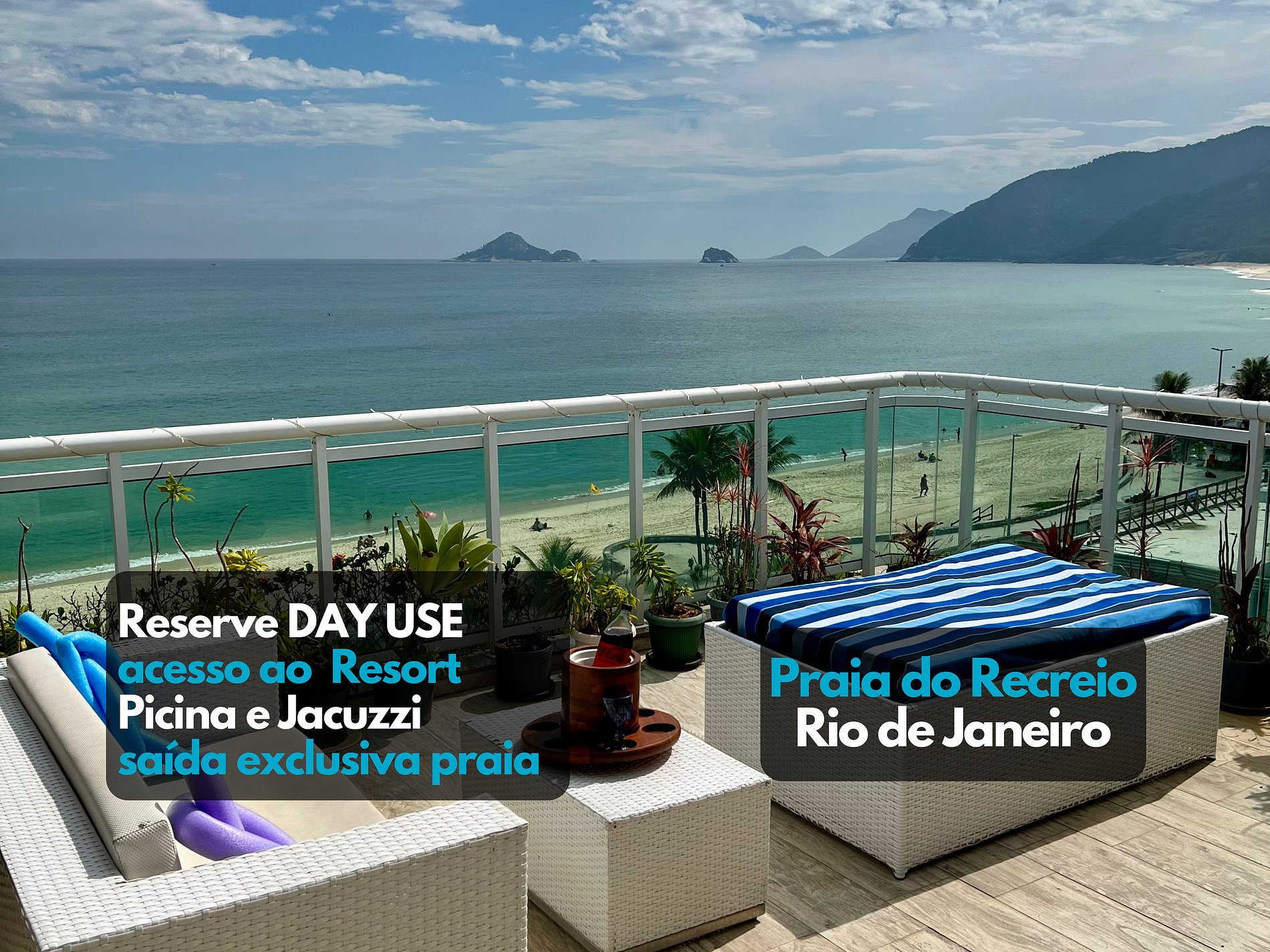 Reserve p/ Day Use Piscina com saída praia Recreio