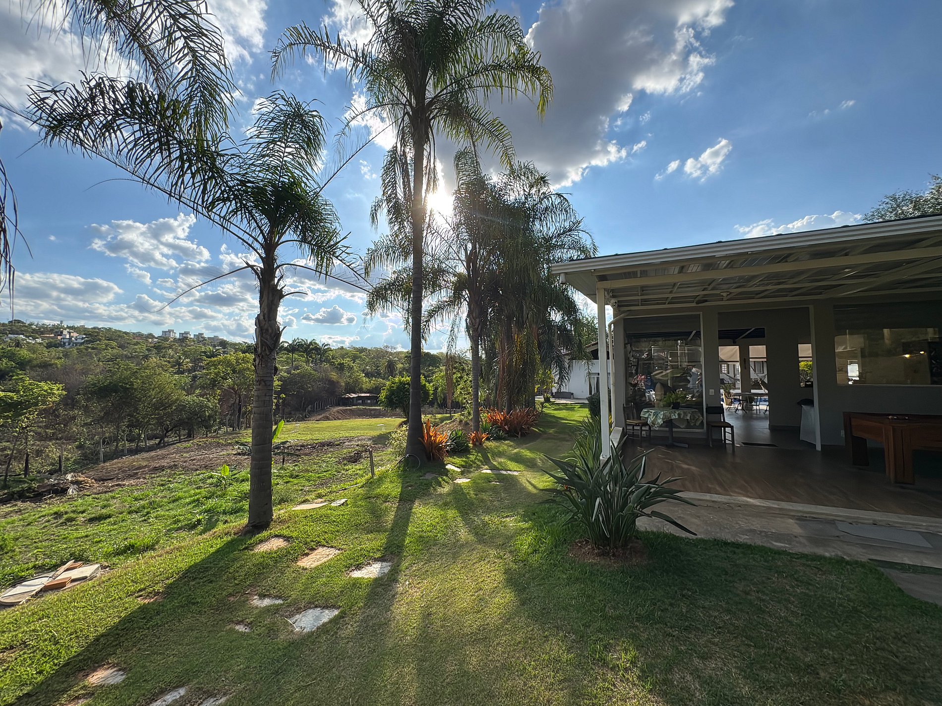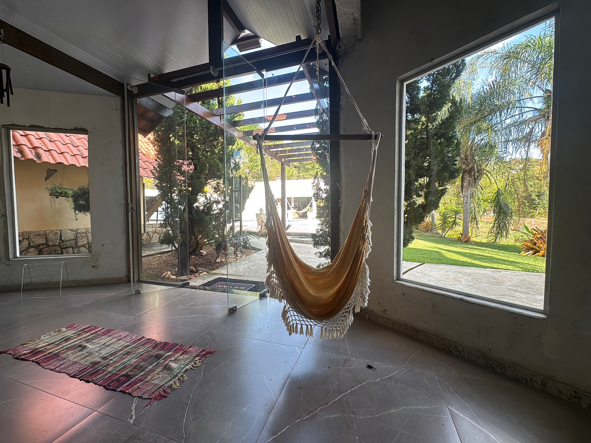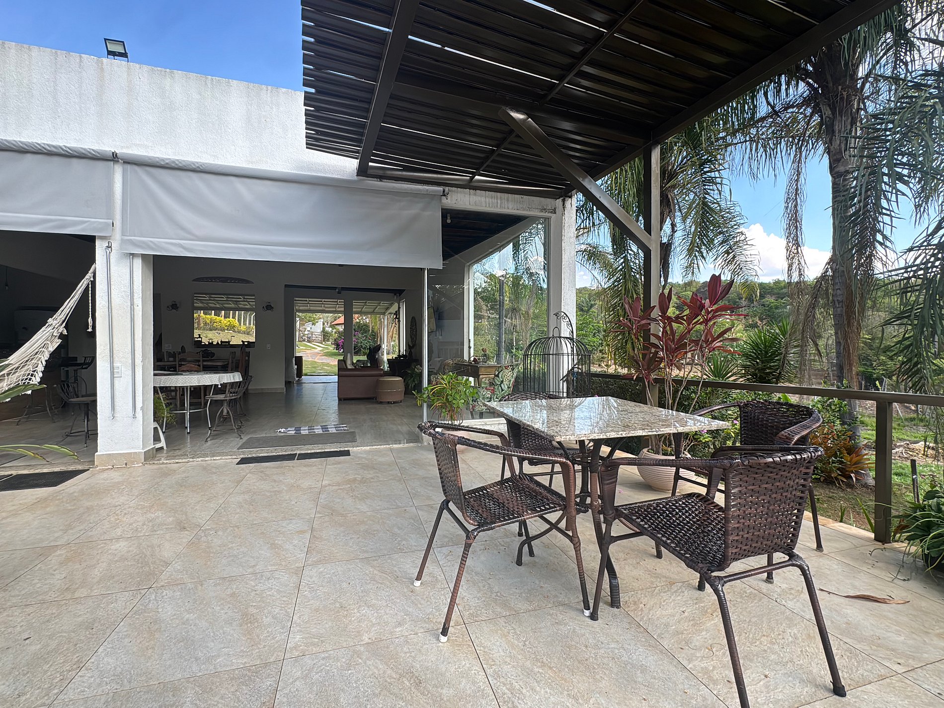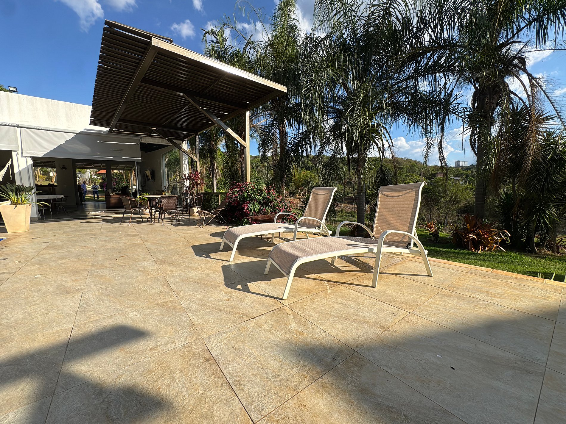 O design do sítio privilegia a luz natural e a ventilação, com espaços amplos e abertos que conectam você à natureza. O ponto central é a deslumbrante área de lazer, onde uma bela piscina com cascata convida ao relaxamento. Ao lado, um espaço gourmet completo com churrasqueira e cozinha equipada se integra perfeitamente à varanda, permitindo que todos socializem em um único ambiente.