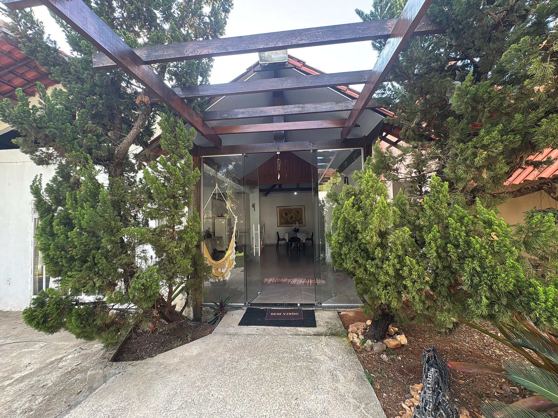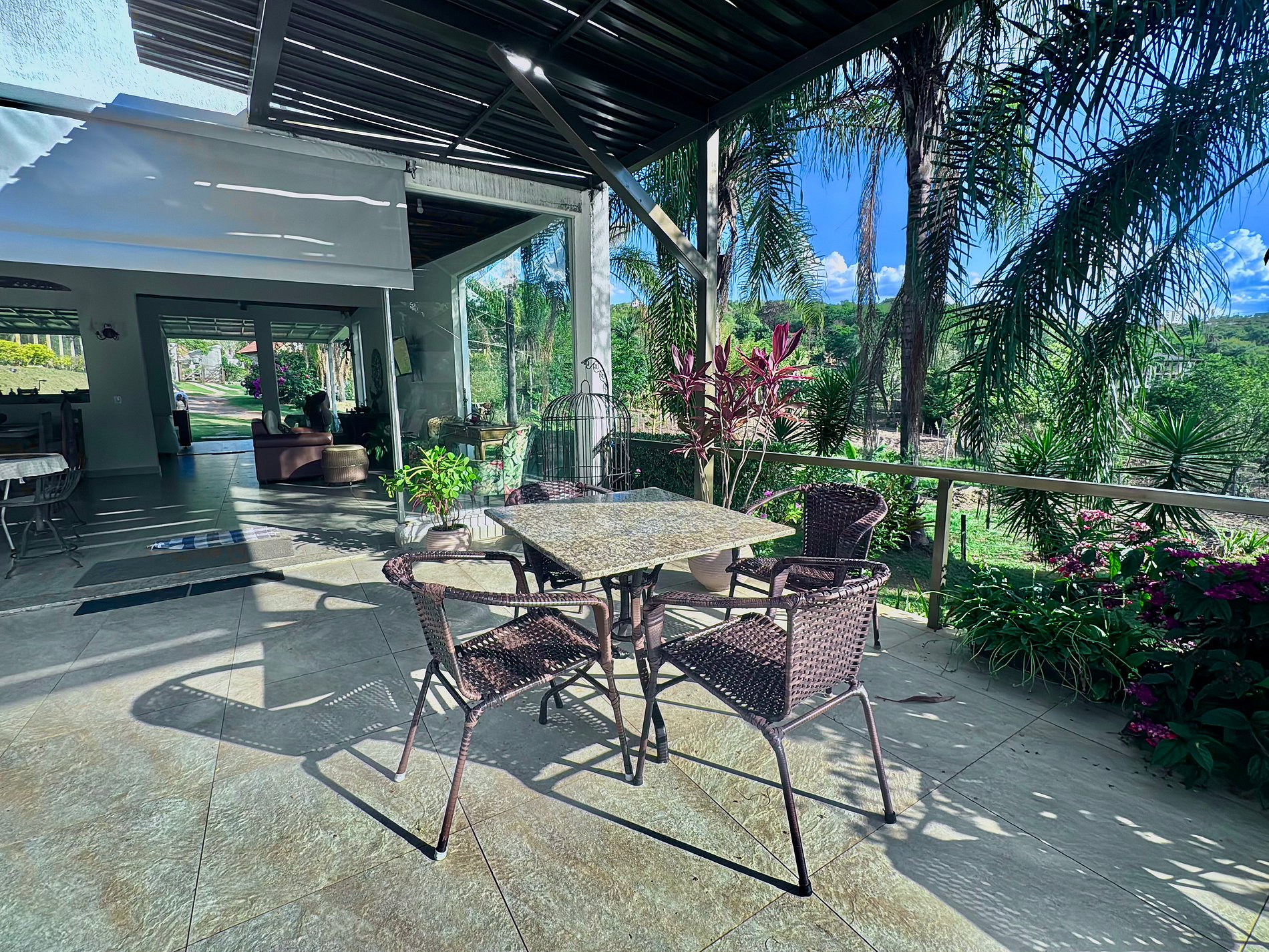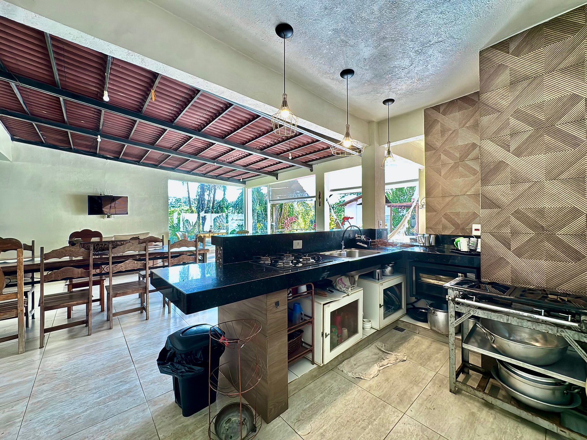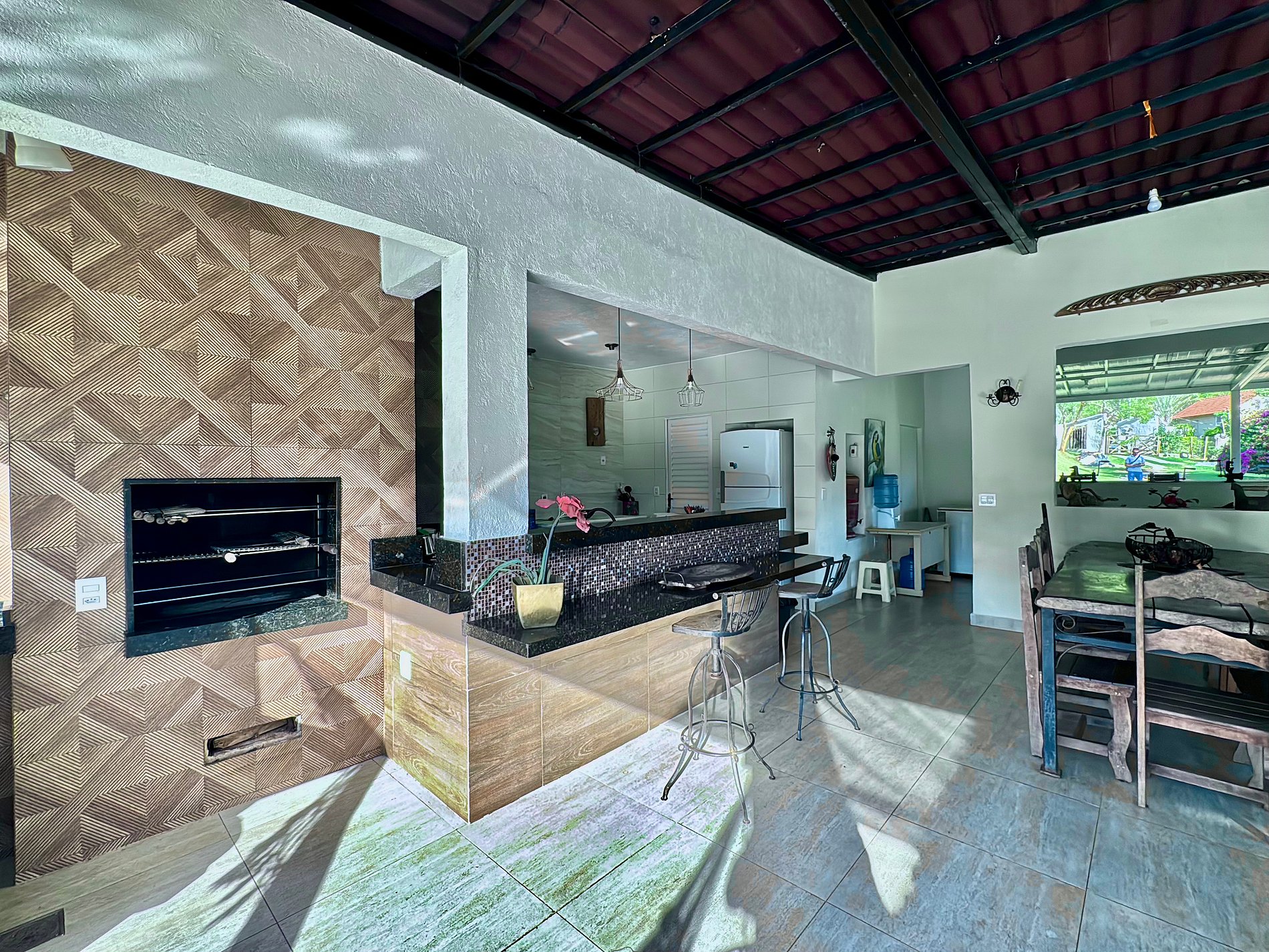 O interior da casa é igualmente impressionante, com ambientes confortáveis, e a conveniência moderna de Internet Fibra Ótica de alta velocidade e TV.