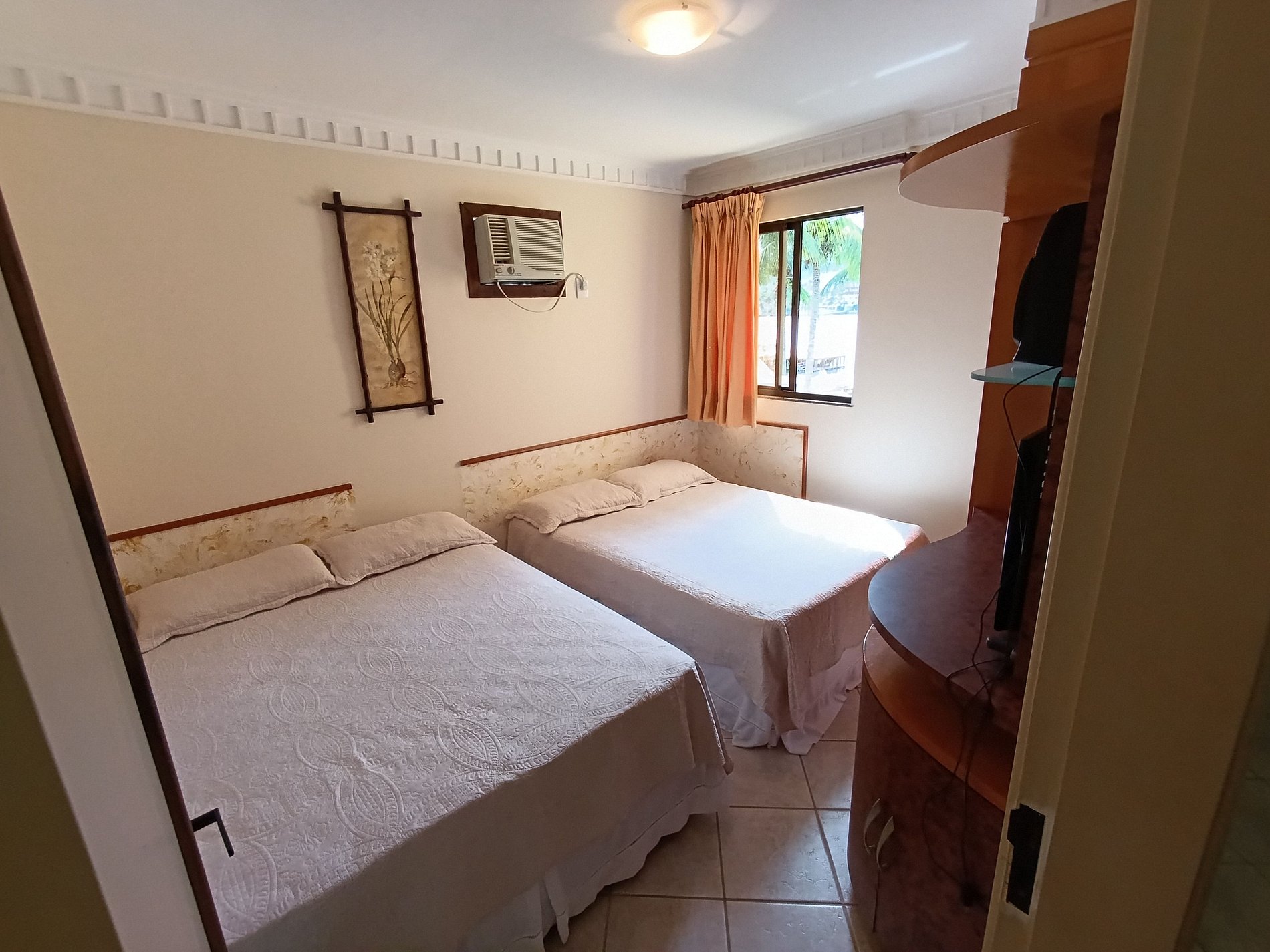 1 quarto duplo com duas camas de solteiro unidas (formando uma cama de casal) + colchão extra de solteiro;