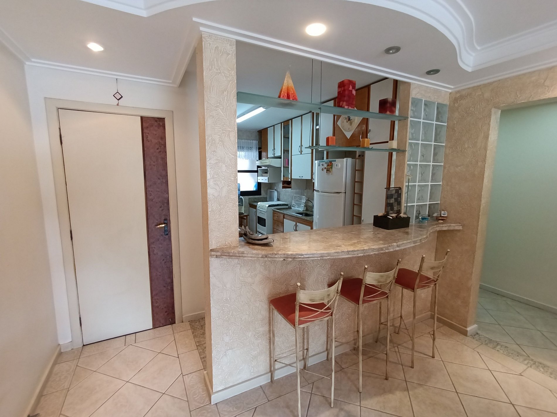 Os ambientes são amplos, bem iluminados e decorados com bom gosto, criando uma atmosfera acolhedora desde a chegada. A área social é integrada, com sala de estar confortável, sala de jantar e cozinha americana totalmente equipada, incluindo fogão, forno, micro-ondas, geladeira, lava-louças, utensílios completos e itens básicos para o dia a dia.