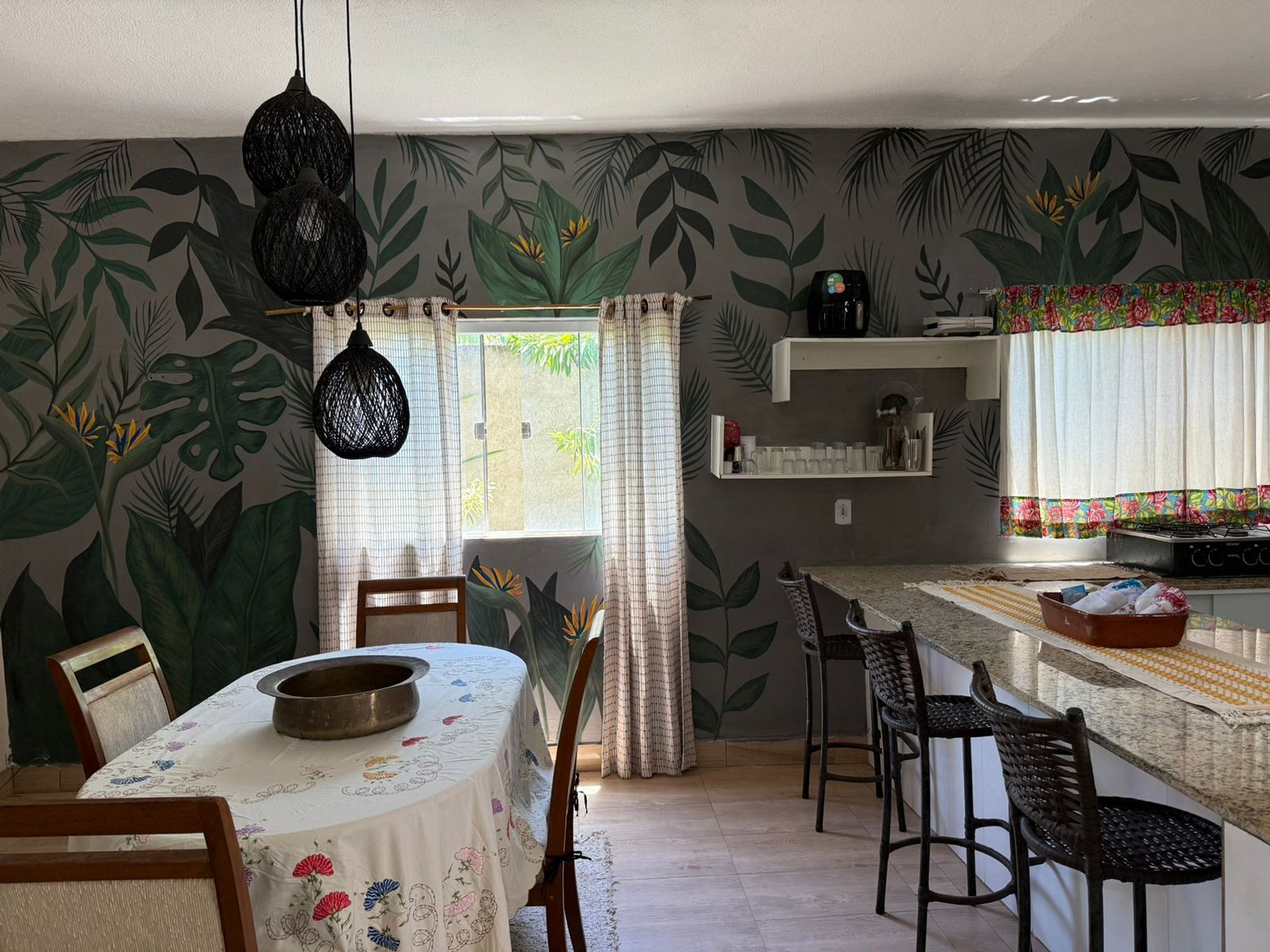 A casa é banhada por luz natural e conta com uma circulação de ar cruzada deliciosa, mantendo os ambientes sempre frescos. É o cenário perfeito para reunir a família e amigos, relaxar na Jacuzzi após um dia de mar e desfrutar de um churrasco na nossa completa área gourmet.