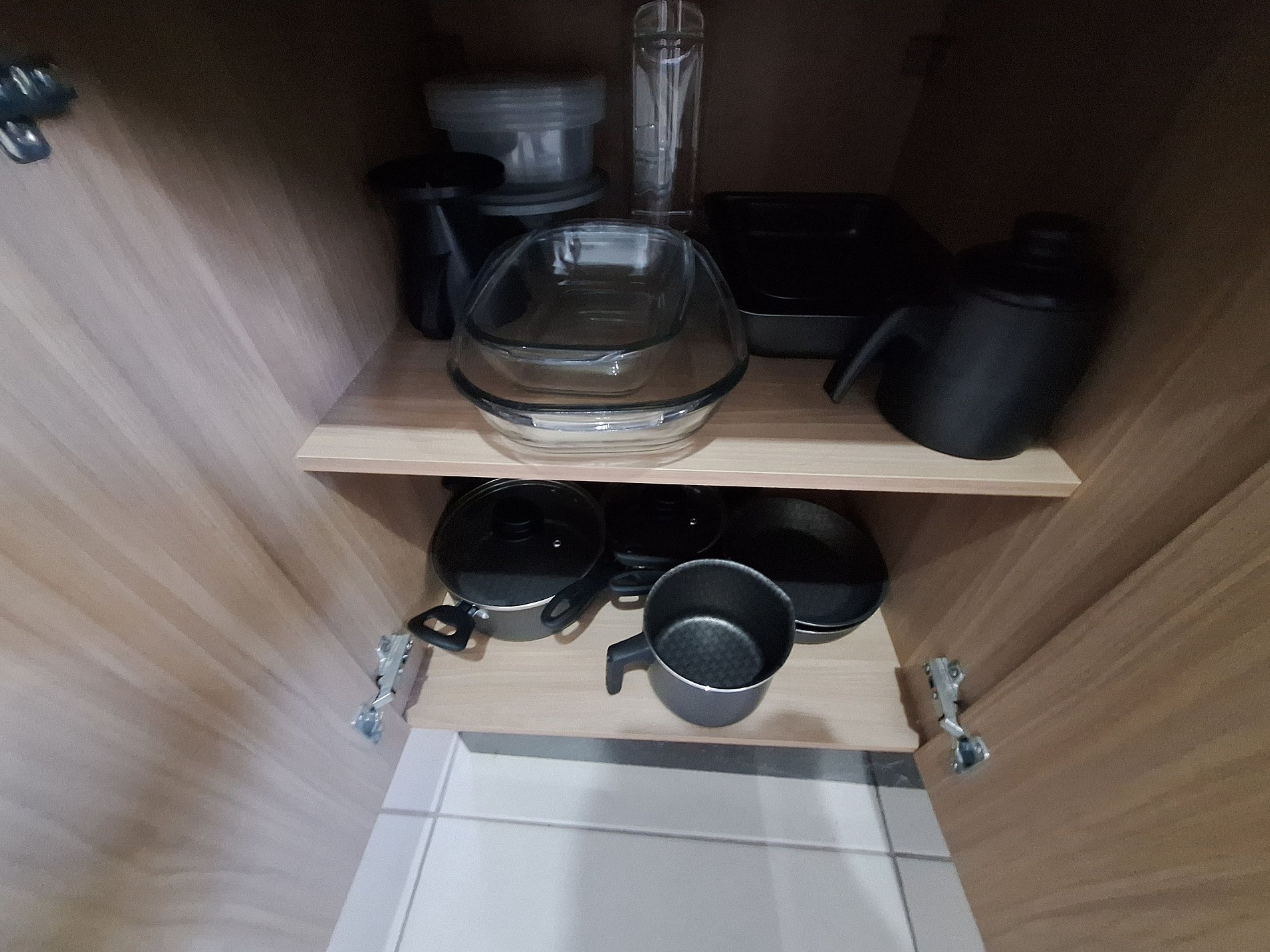 A cozinha é completa e equipada, com geladeira, fogão, micro-ondas, lava-louças, utensílios, louças e talheres — perfeita tanto para refeições rápidas quanto para quem prefere cozinhar durante a estadia. A área de serviço dispõe de máquina de lavar, trazendo ainda mais praticidade.