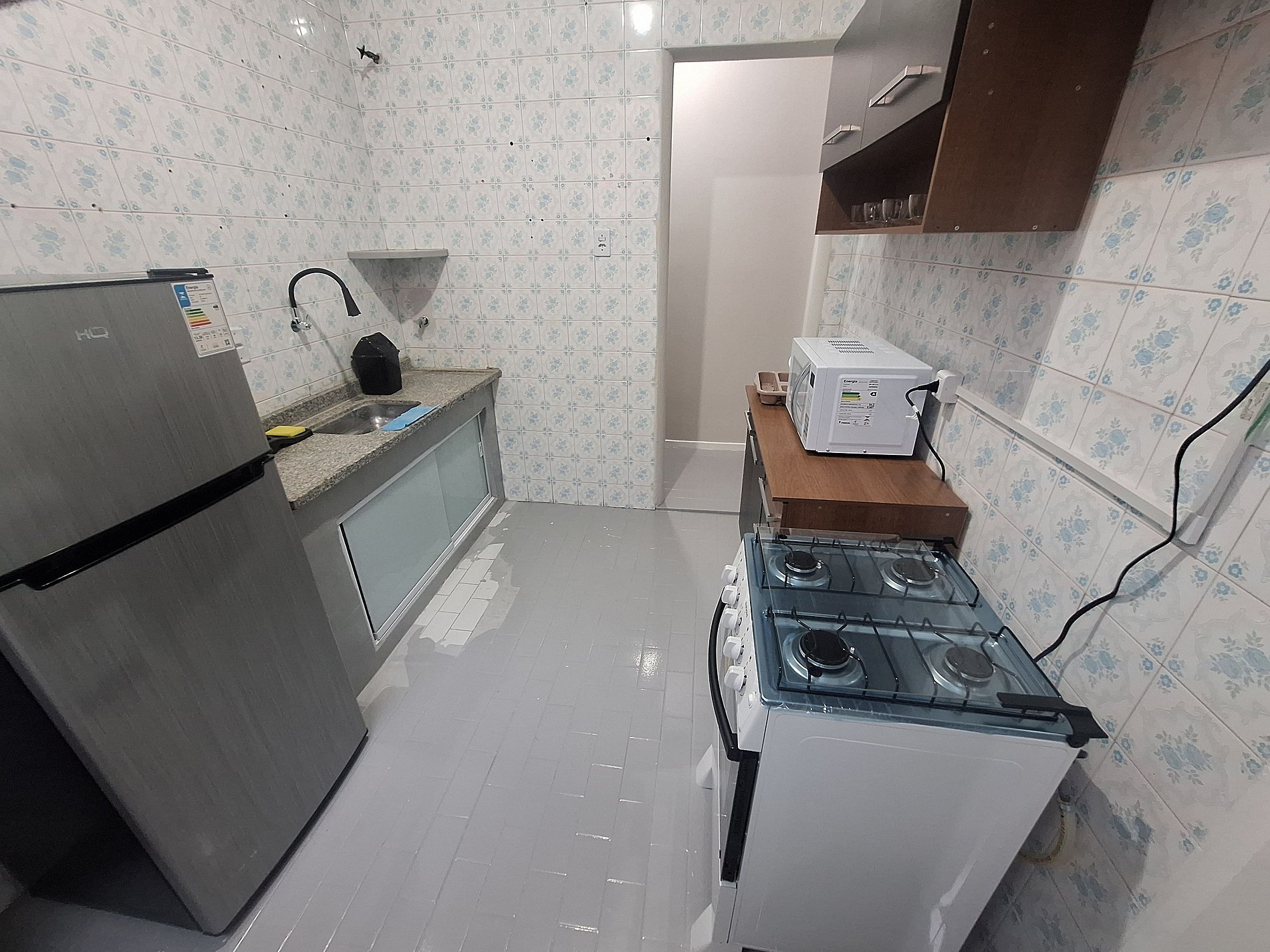 A cozinha é prática e atende perfeitamente às necessidades do dia a dia. O espaço conta com fogão, geladeira, lava-louças, pia e itens básicos de cozinha, além de utensílios essenciais para o preparo de refeições, permitindo que o hóspede mantenha sua rotina com facilidade.