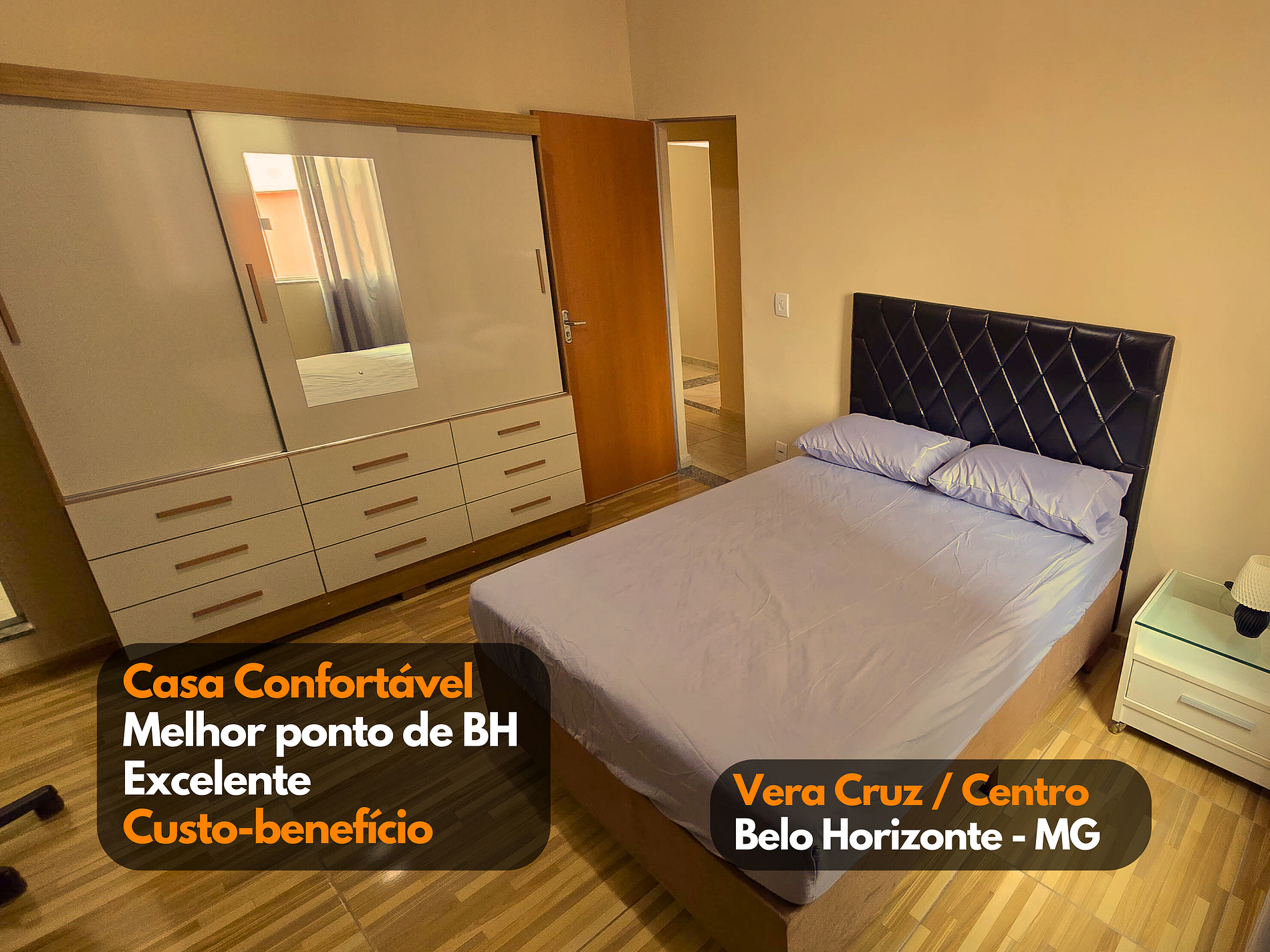 Quartos: 2 quartos espaçosos, ambos com cama de casal e armário