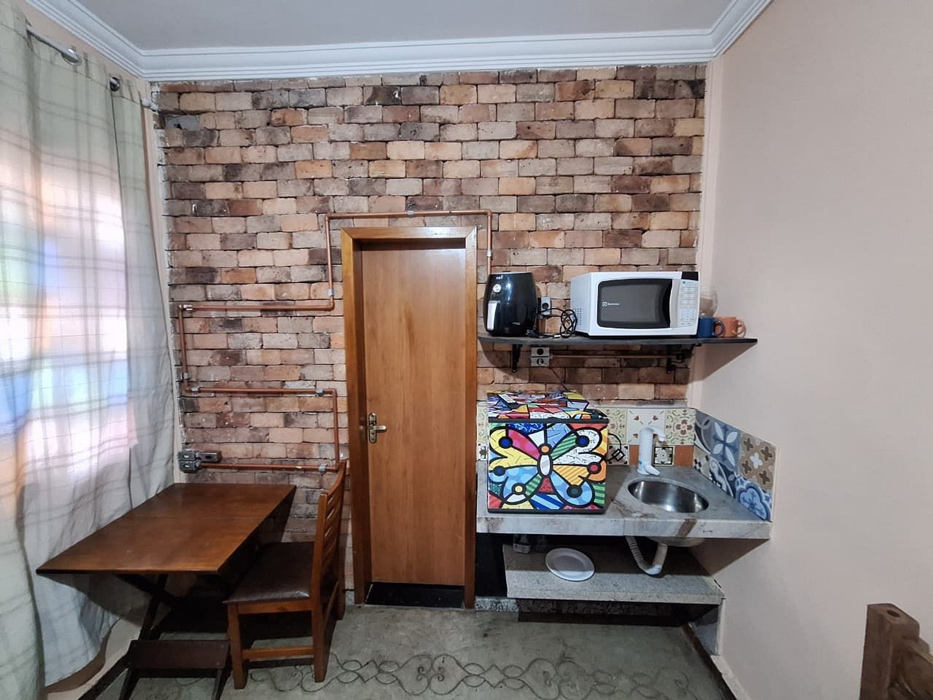 Charmoso studio, perfeito para acomodar até 2 hóspedes com conforto. Dispõe de TV, internet Wi-Fi rápida e cozinha de apoio completa com fogão elétrico, airfryer, micro-ondas e frigobar. Moderno e bem planejado, oferece chuveiro com água quente, espelho amplo e secador de cabelo.